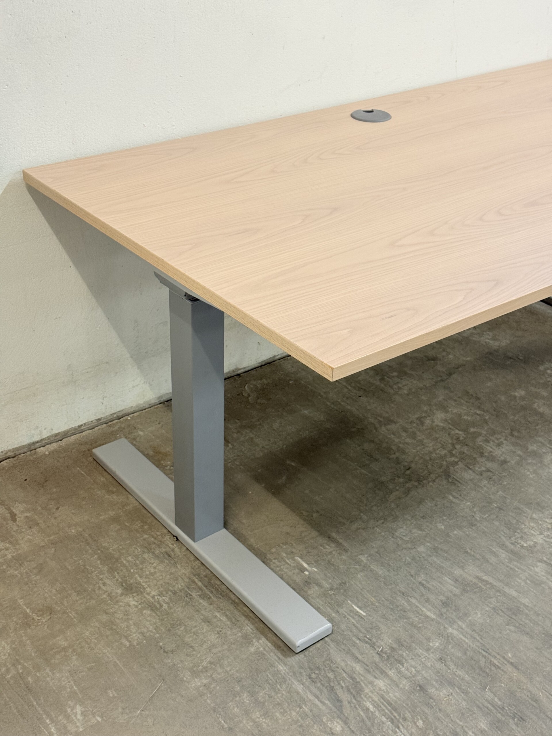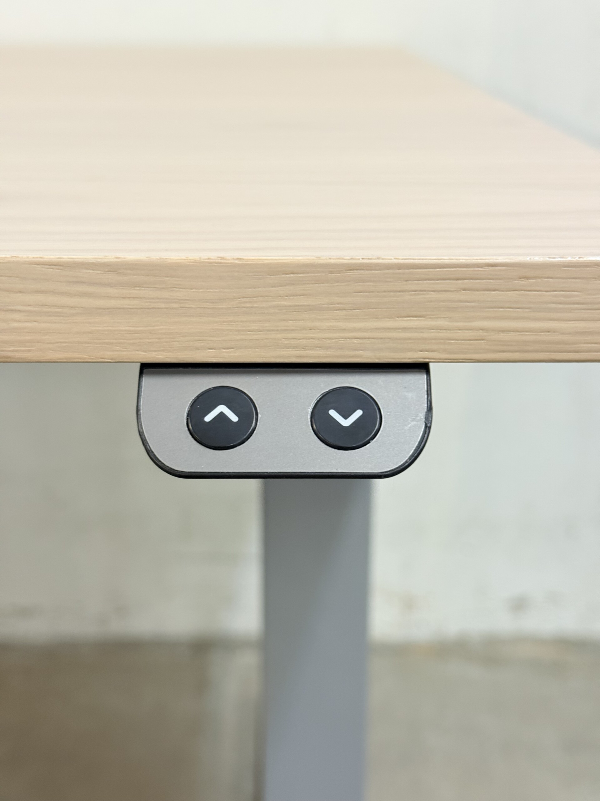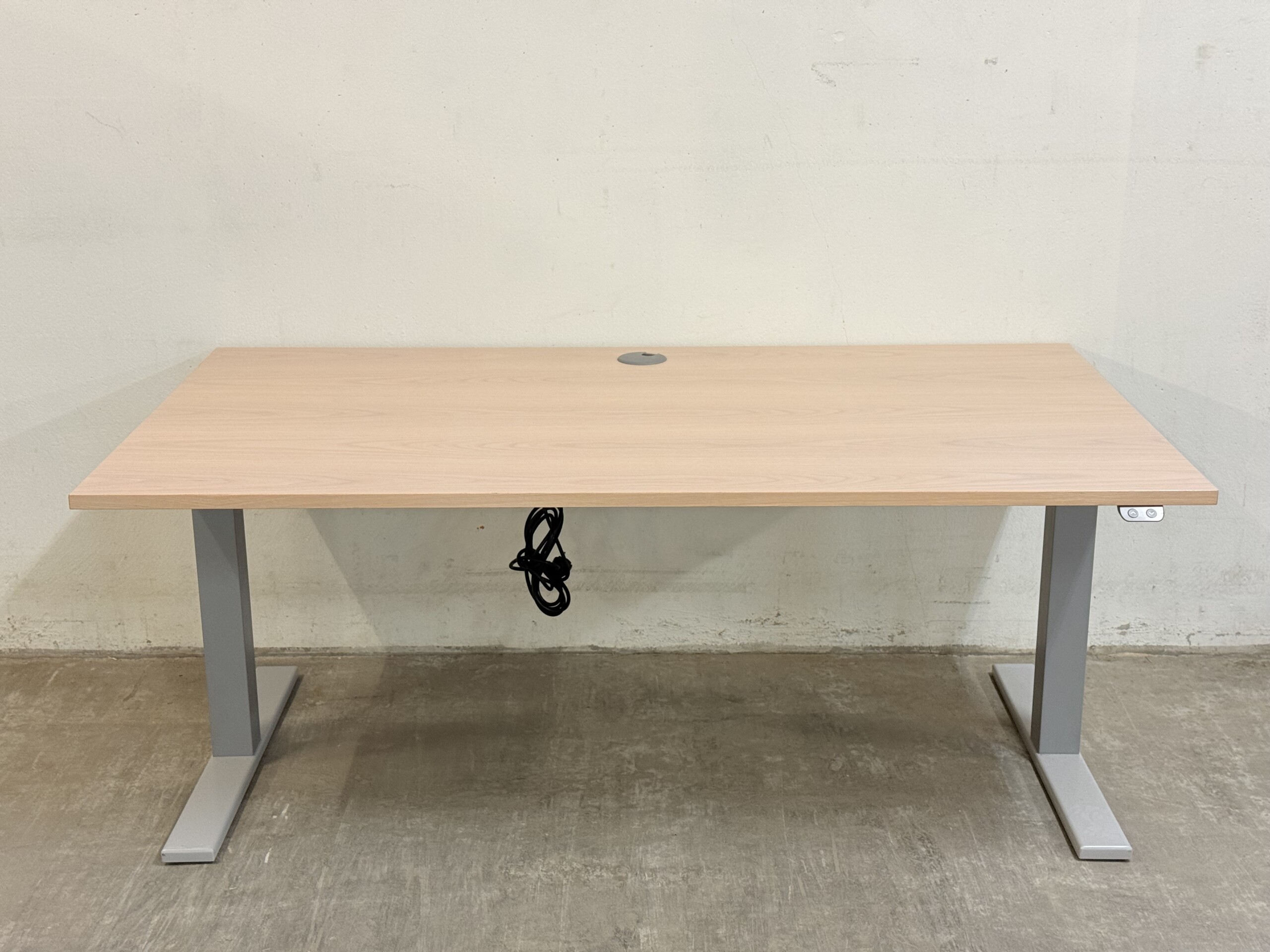 Bordplade i træ (ask). Understel i metal (grå). Højdejusterbar.
