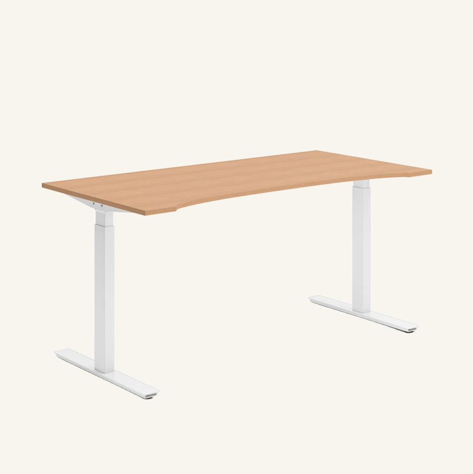 Bordplade i træ (bok). Understel i metal (hvid). Højdejusterbar.