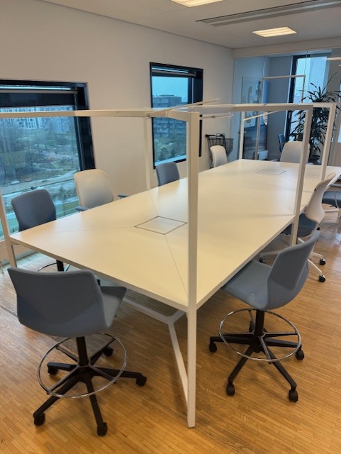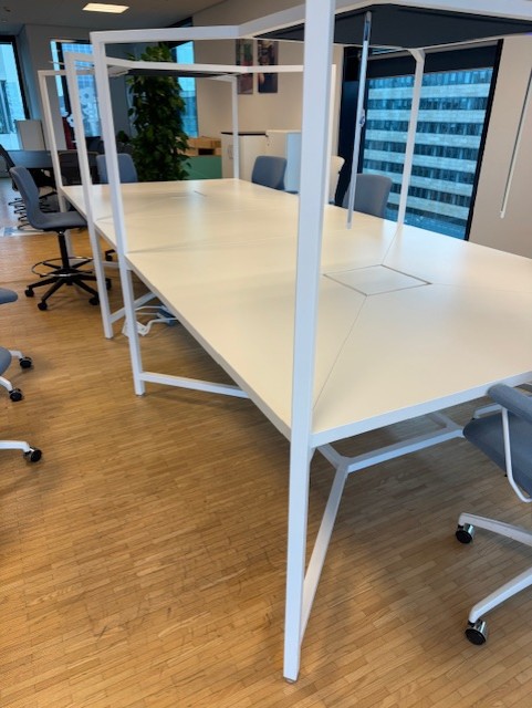 Bordplade i laminat (hvid). Understel i metal (hvid).