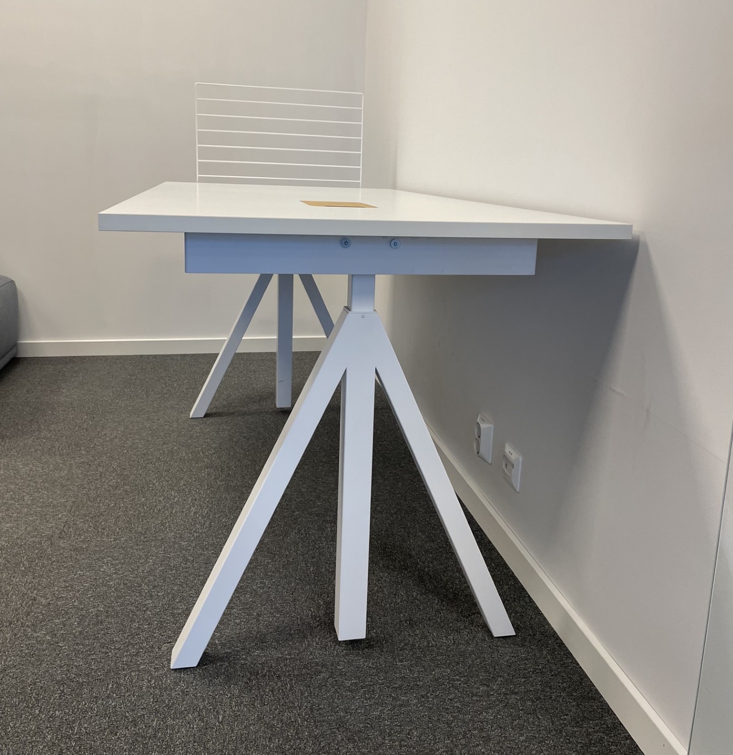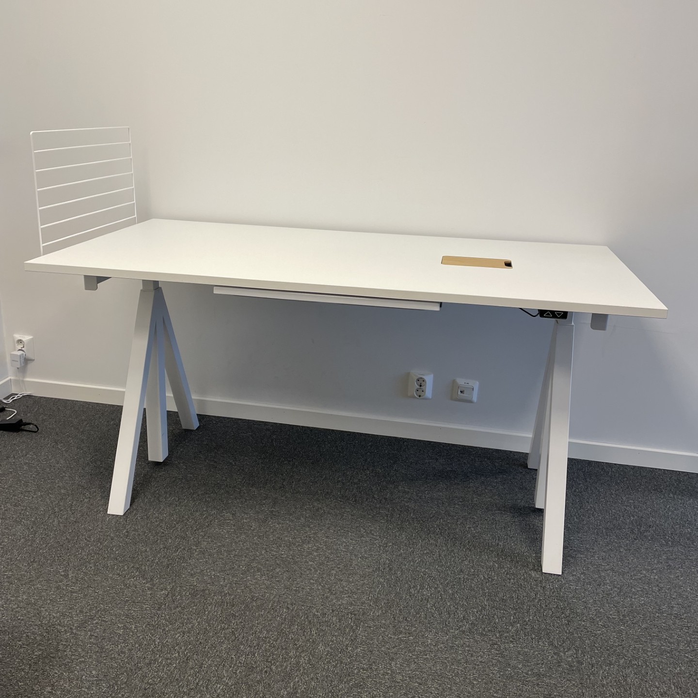 Bordplade i laminat (hvid). Understel i metal (hvid). Højdejusterbar.