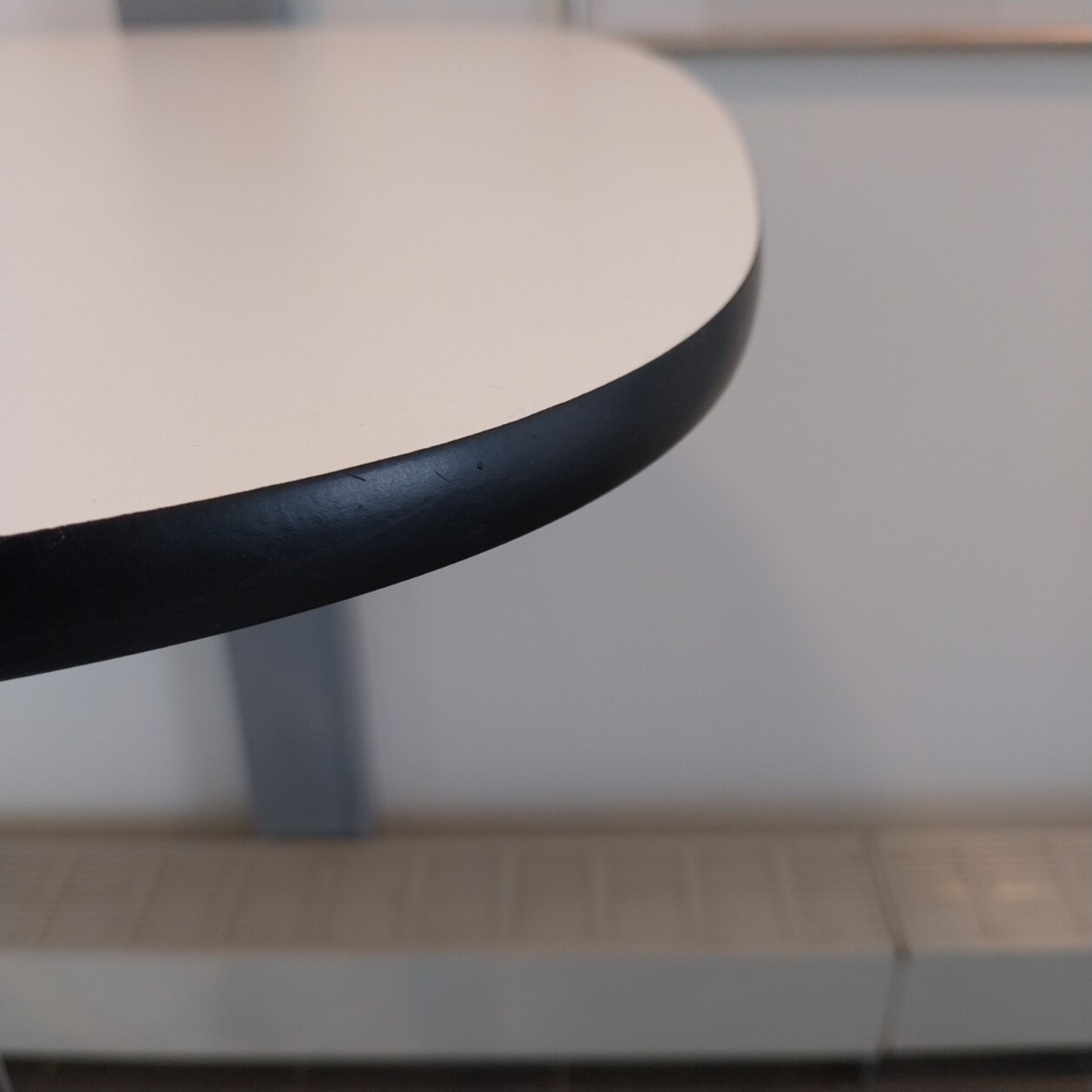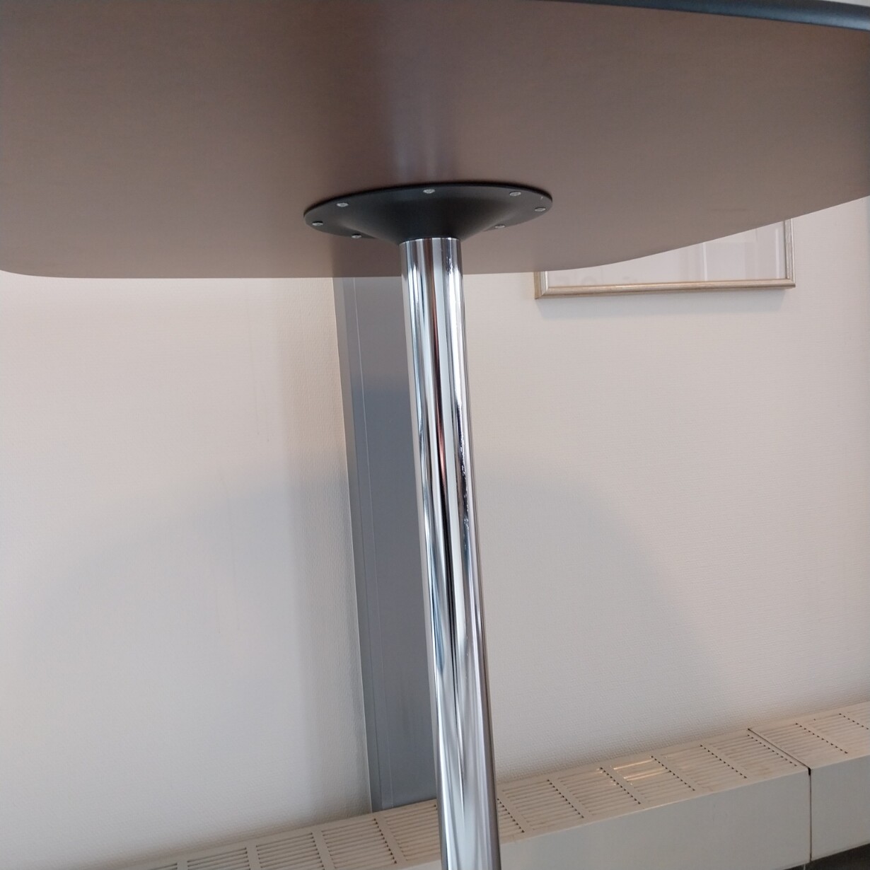 Bordplade i linoleum (hvid). Understel i metal (krom).