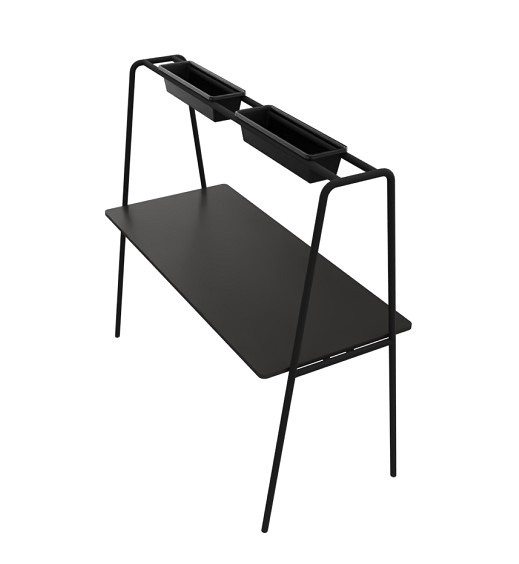 Bordplade i laminat (sort). Understel i metal (sort).