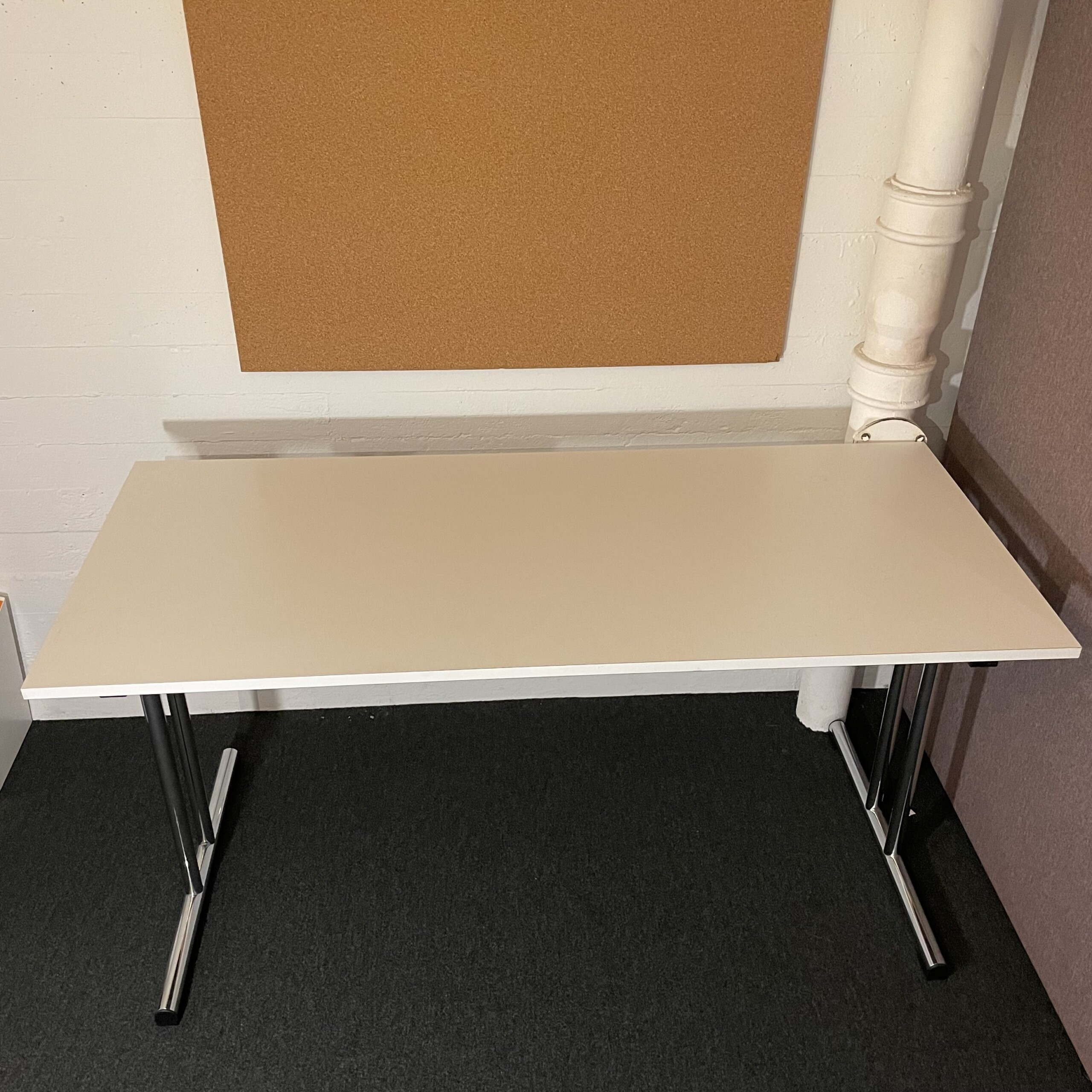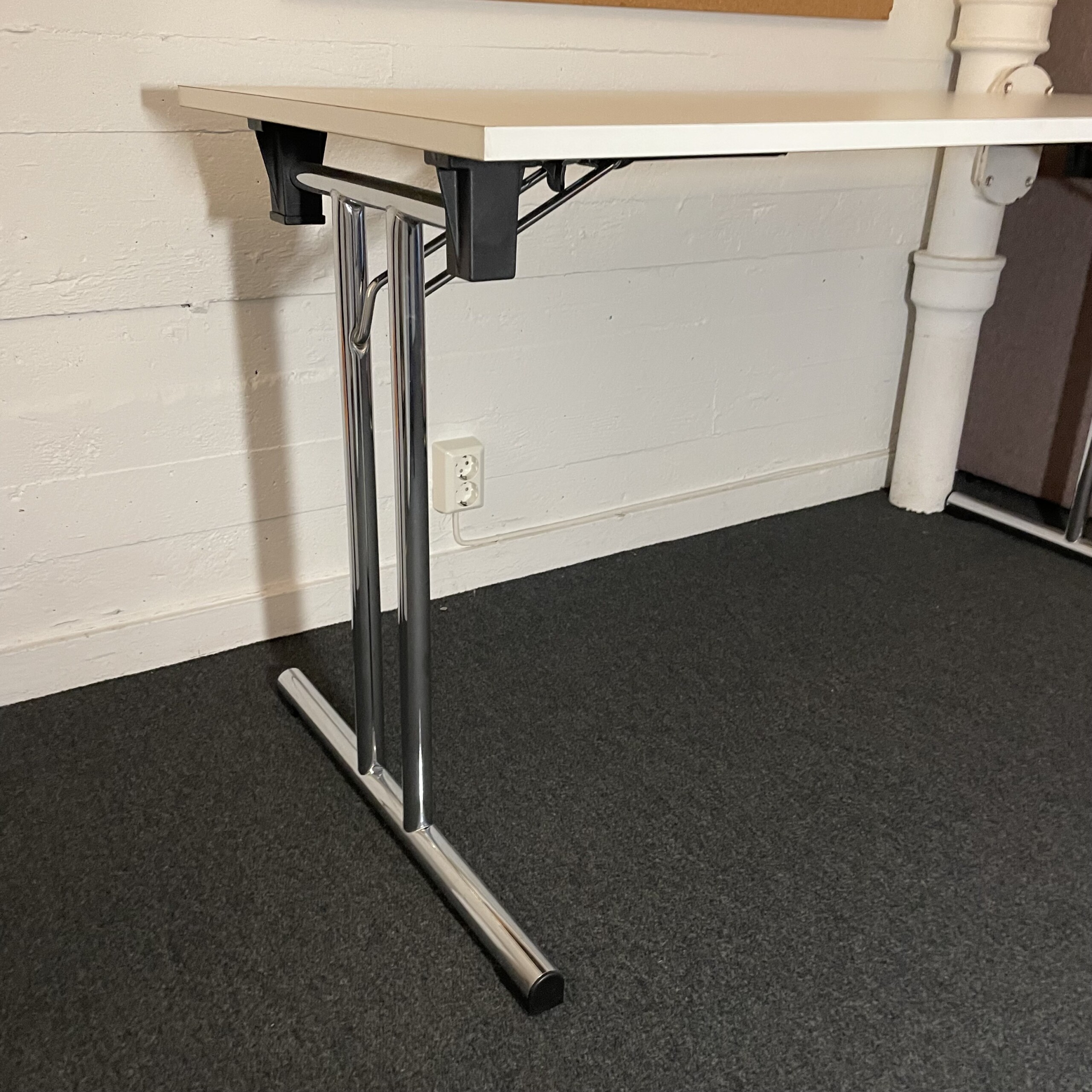 Bordplade i laminat (hvid). Understel i metal (krom).