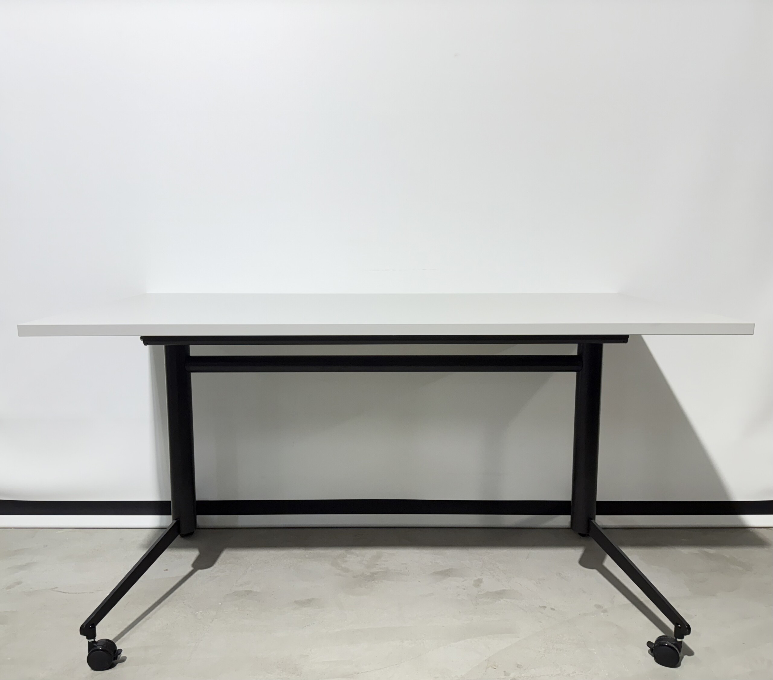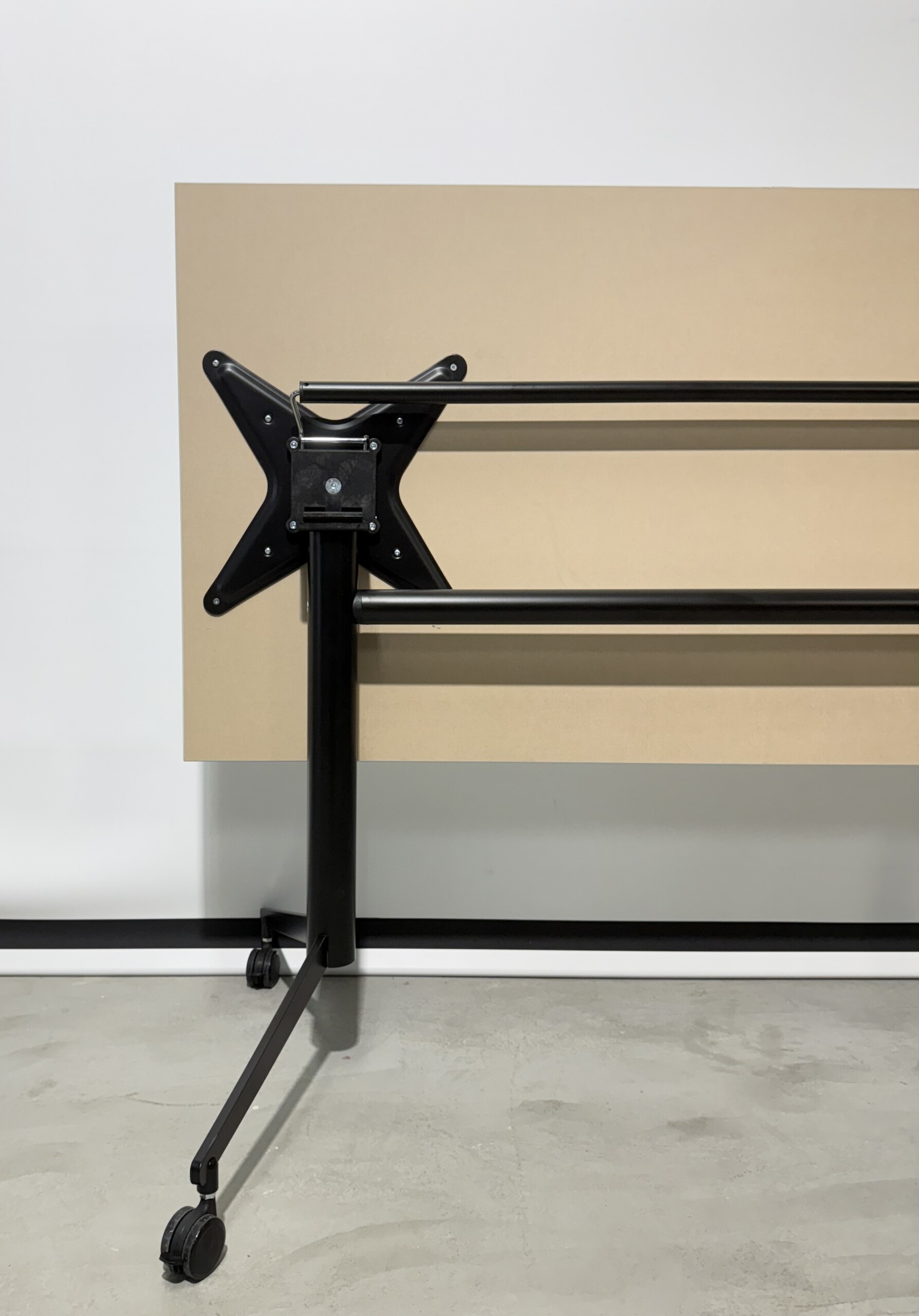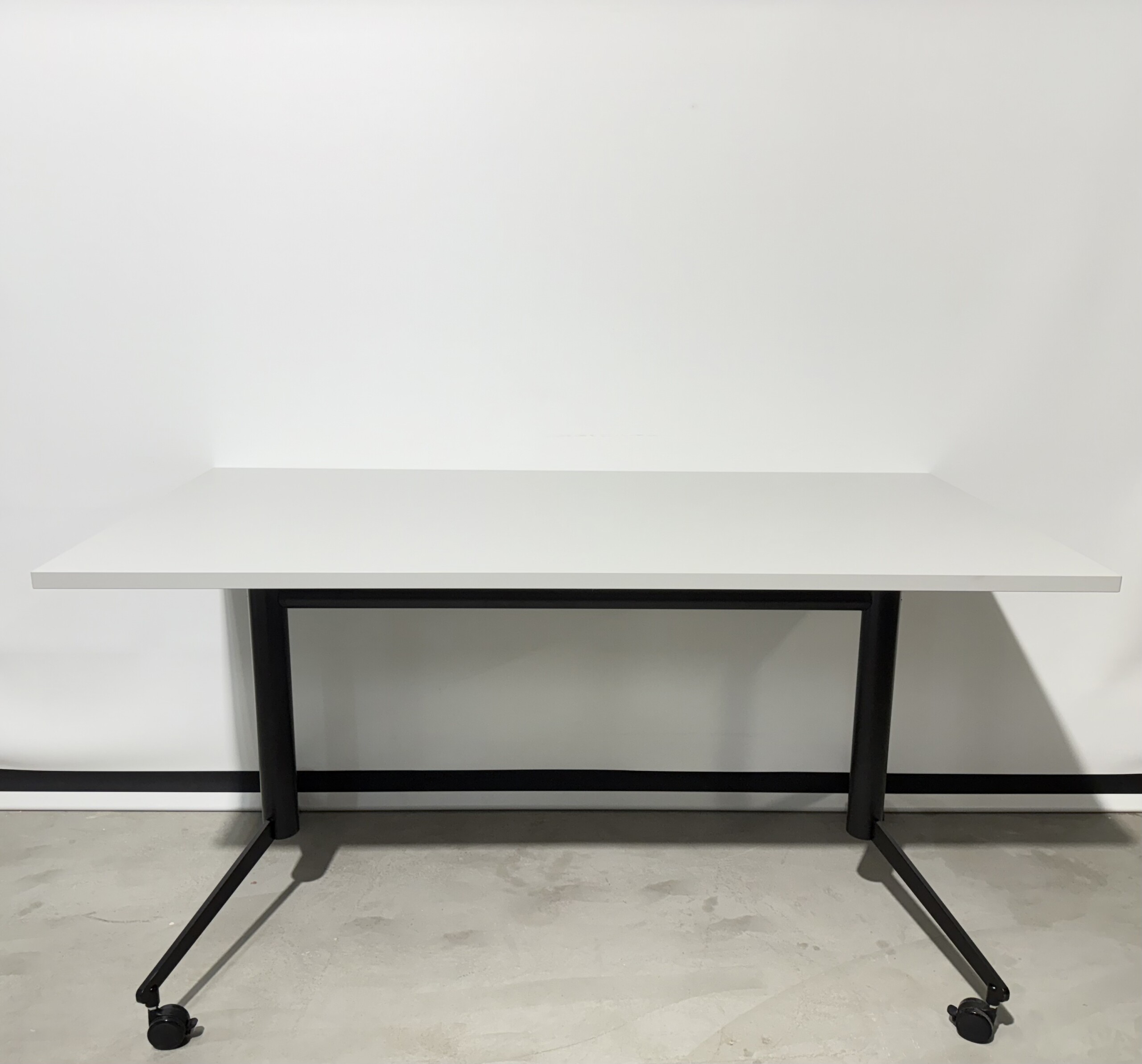Bordplade i laminat (grå). Understel i metal (sort).