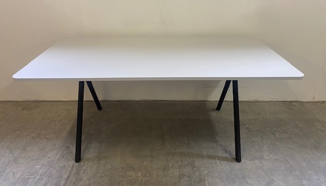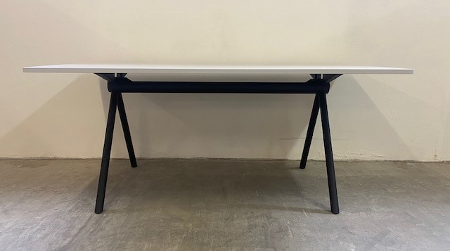 Bordplade i laminat (grå). Understel i metal (sort).