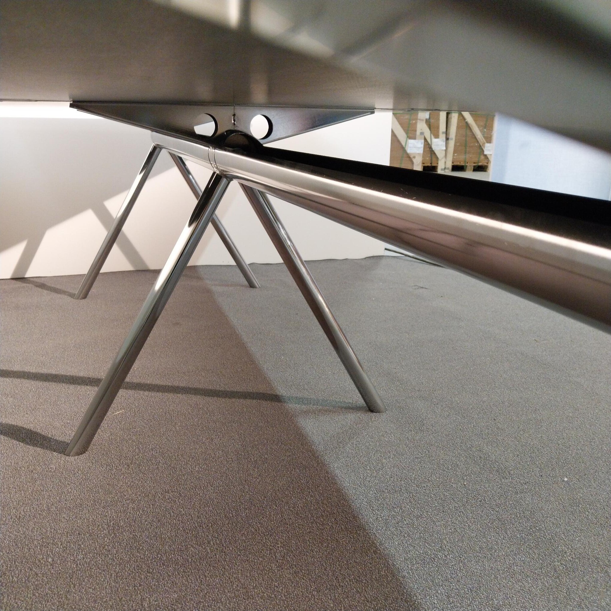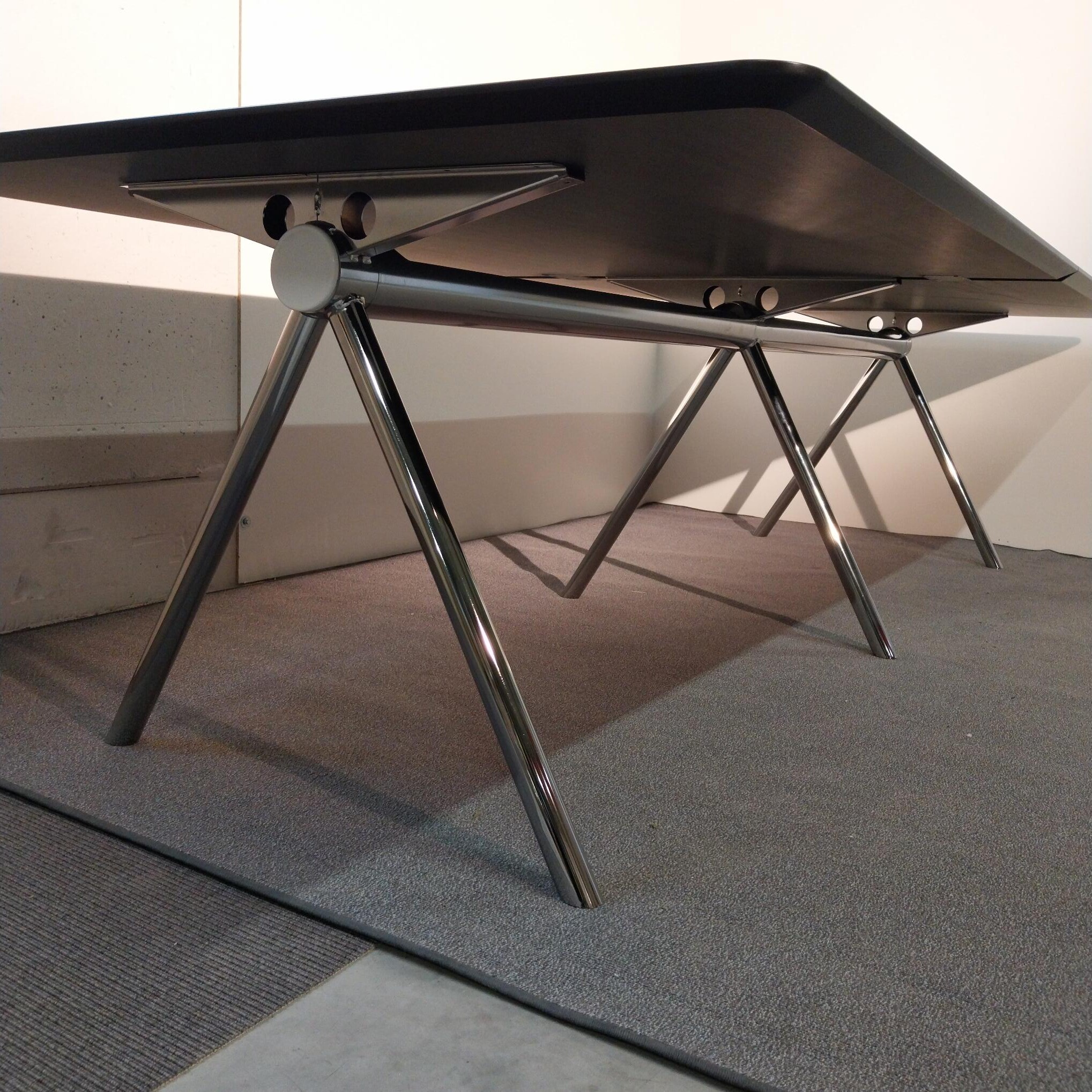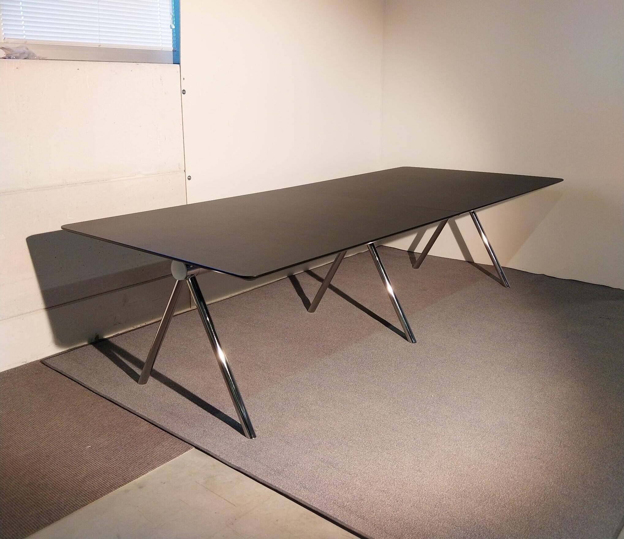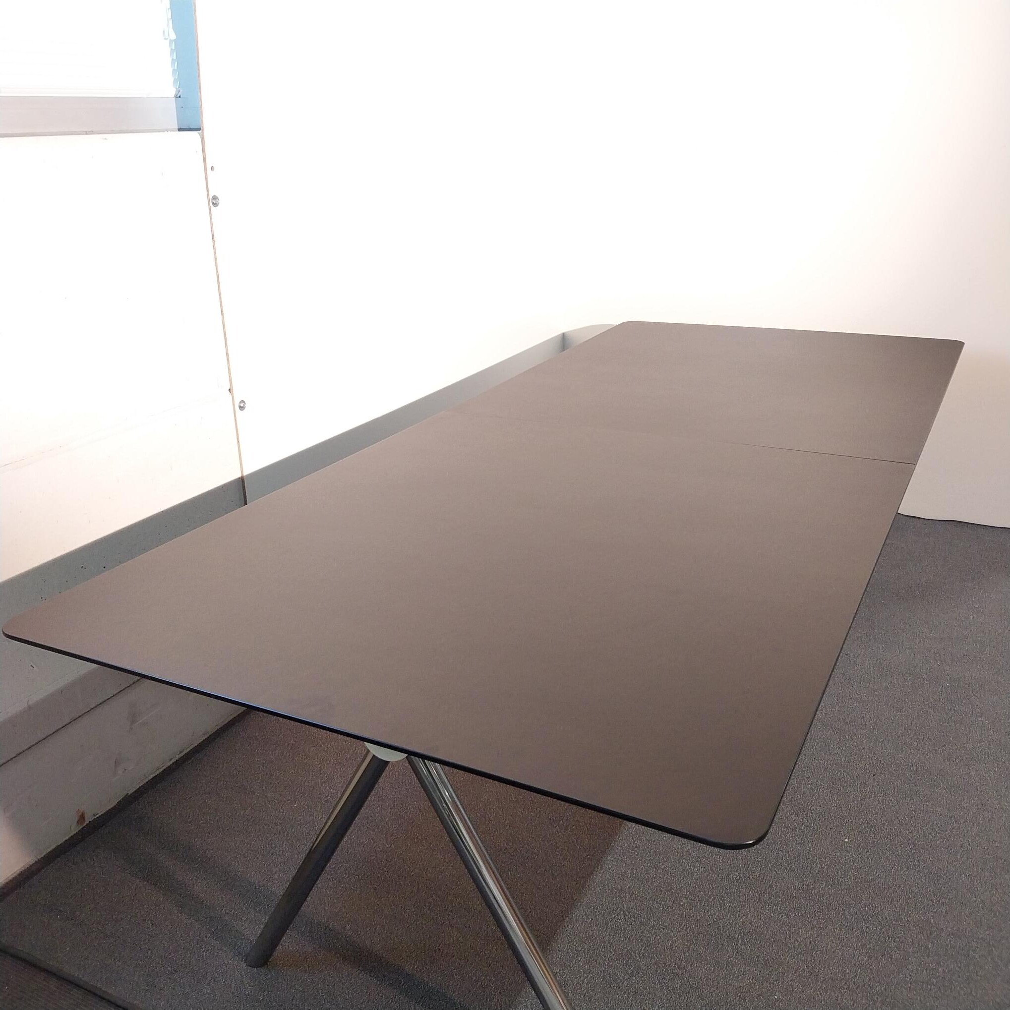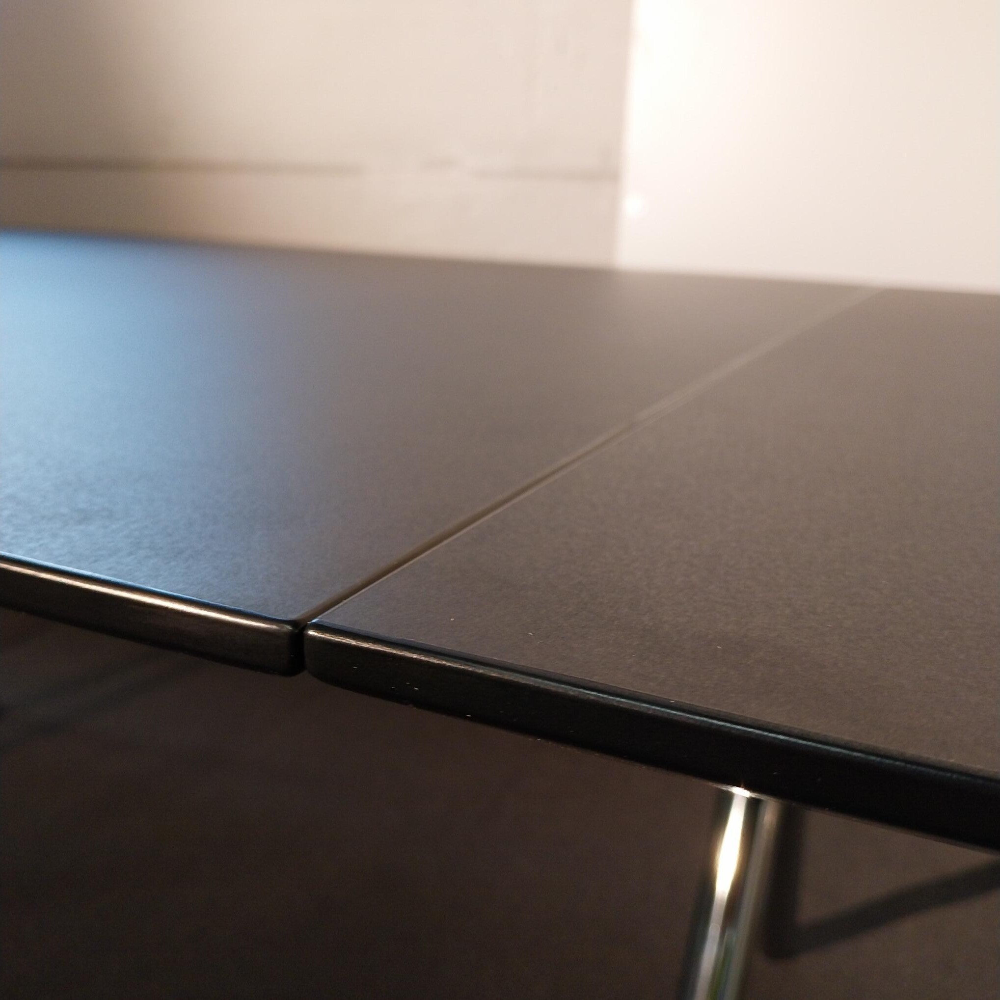 Bordplade i linoleum (sort). Understel i metal (krom).