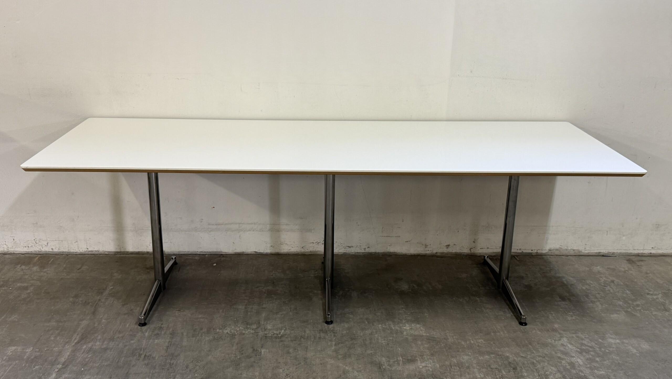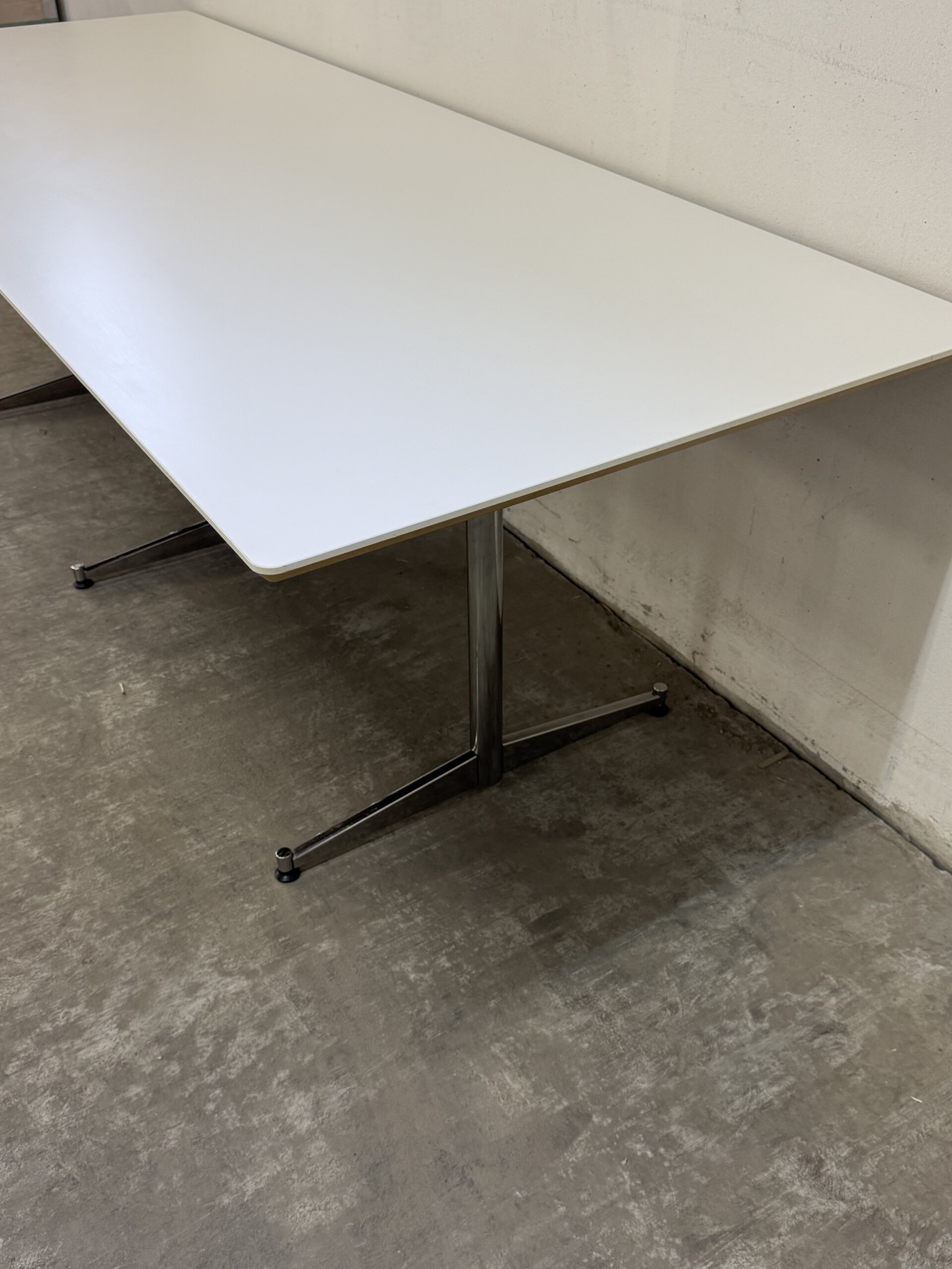 Bordplade i laminat (hvid). Understel i metal (krom).