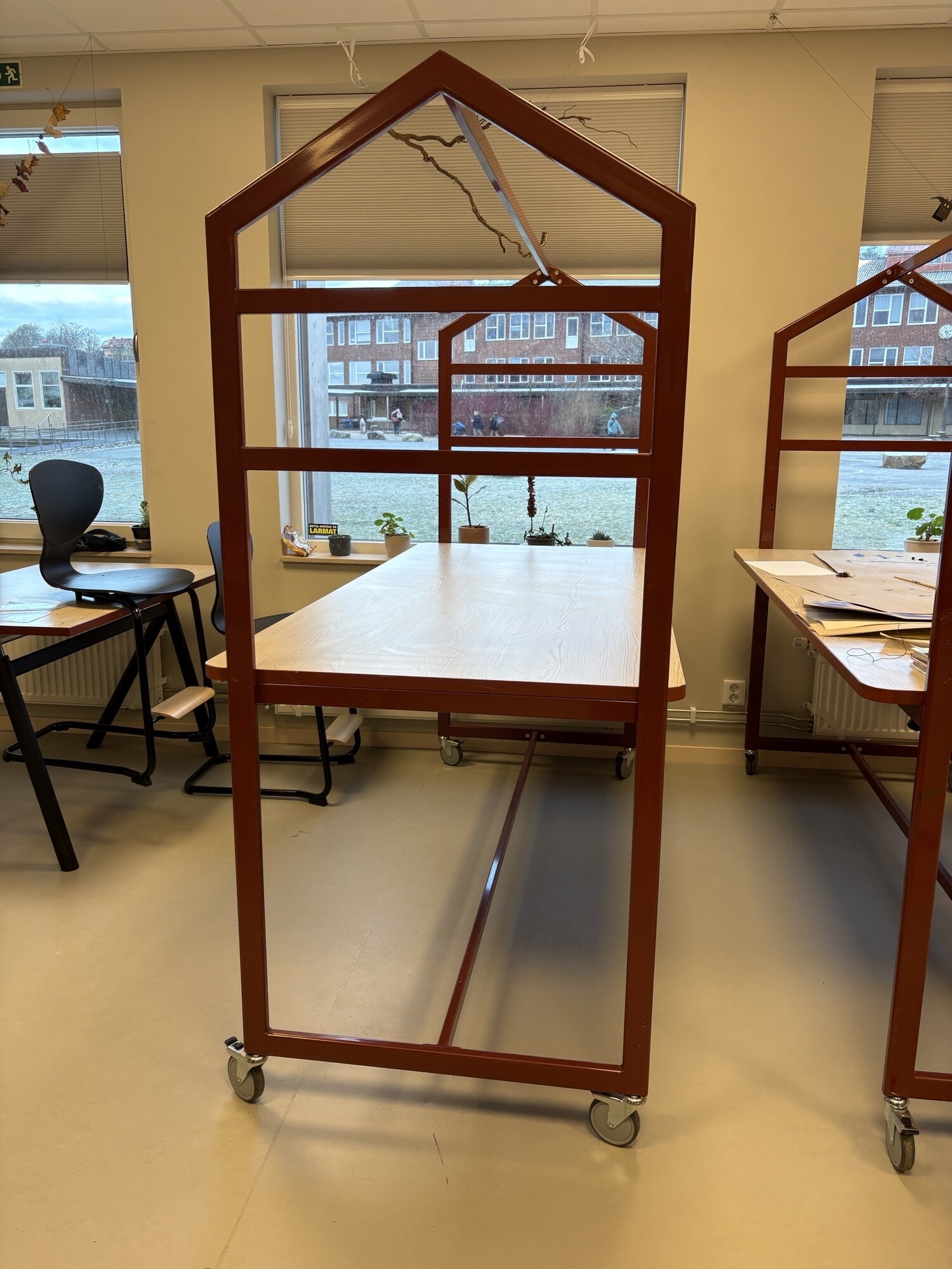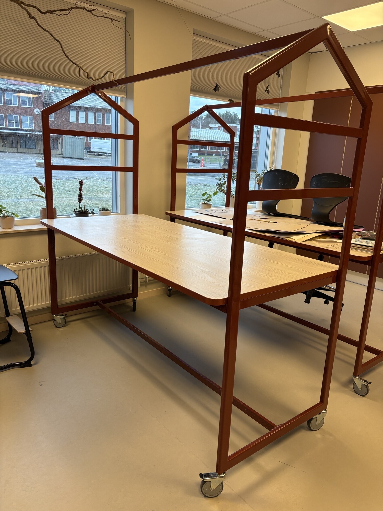 Bordplade i laminat. Understel i metal (rød).