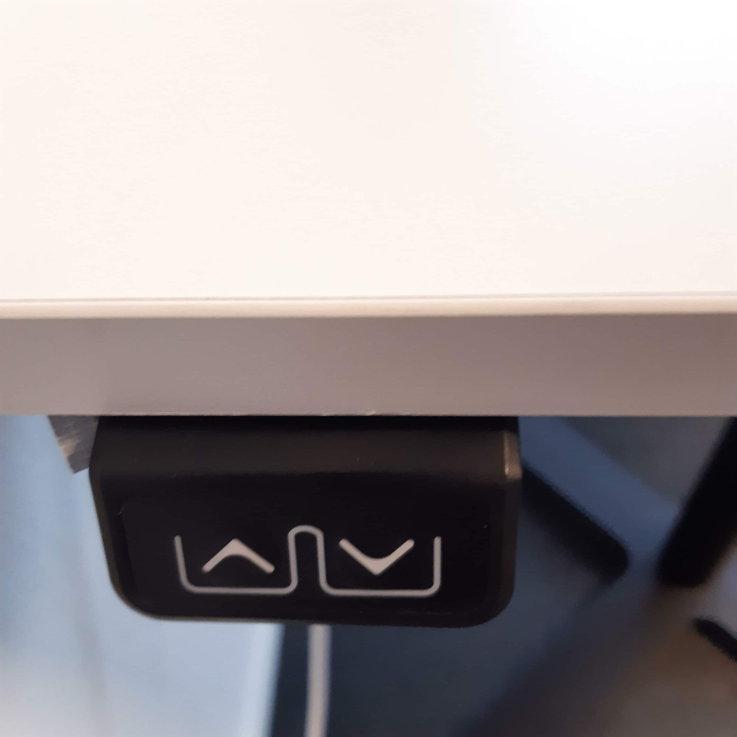 Bordplade i laminat (hvid). Understel i metal (sort). Højdejusterbar.