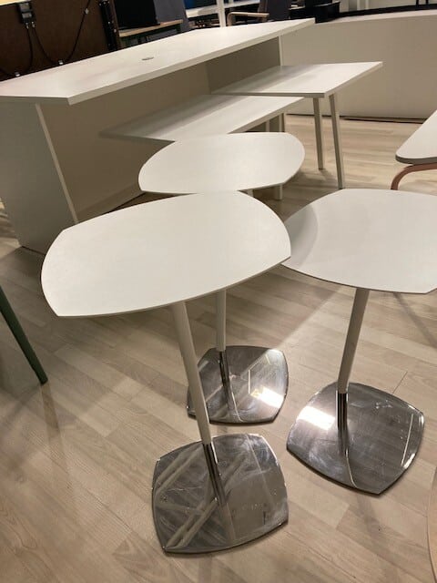 Bordplade i laminat (hvid). Understel i metal (krom).