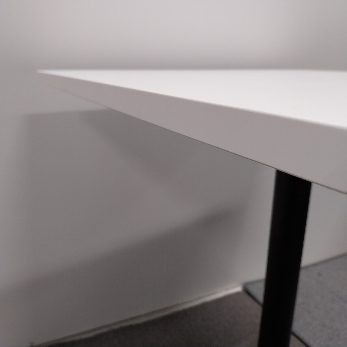 Bordplade i laminat (hvid). Understel i metal (sort).