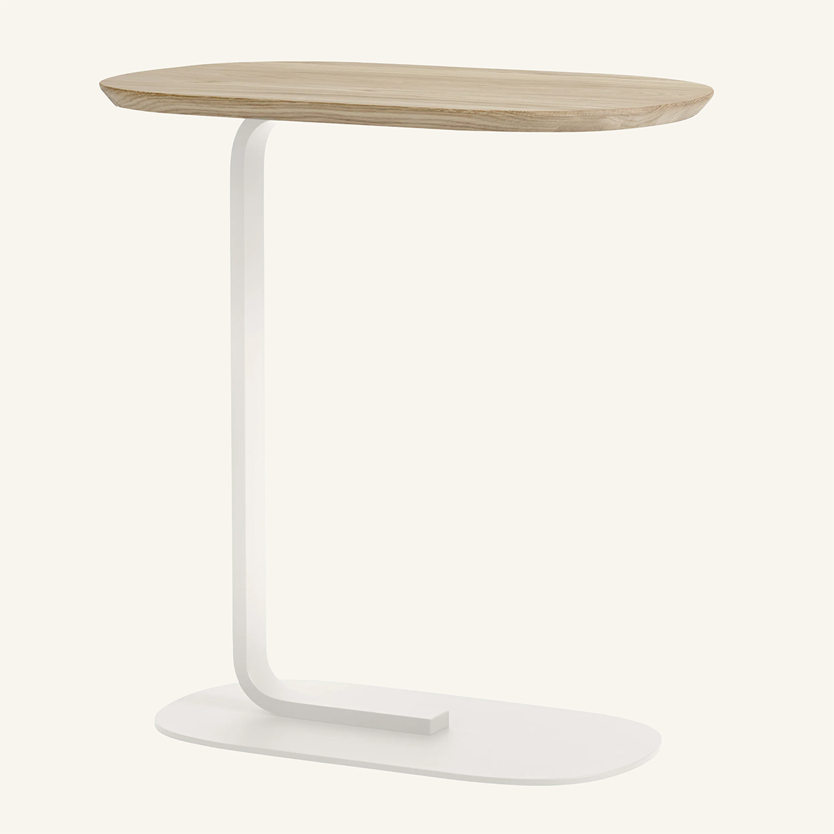 Bordplade i træ (eg). Understel i metal (hvid).