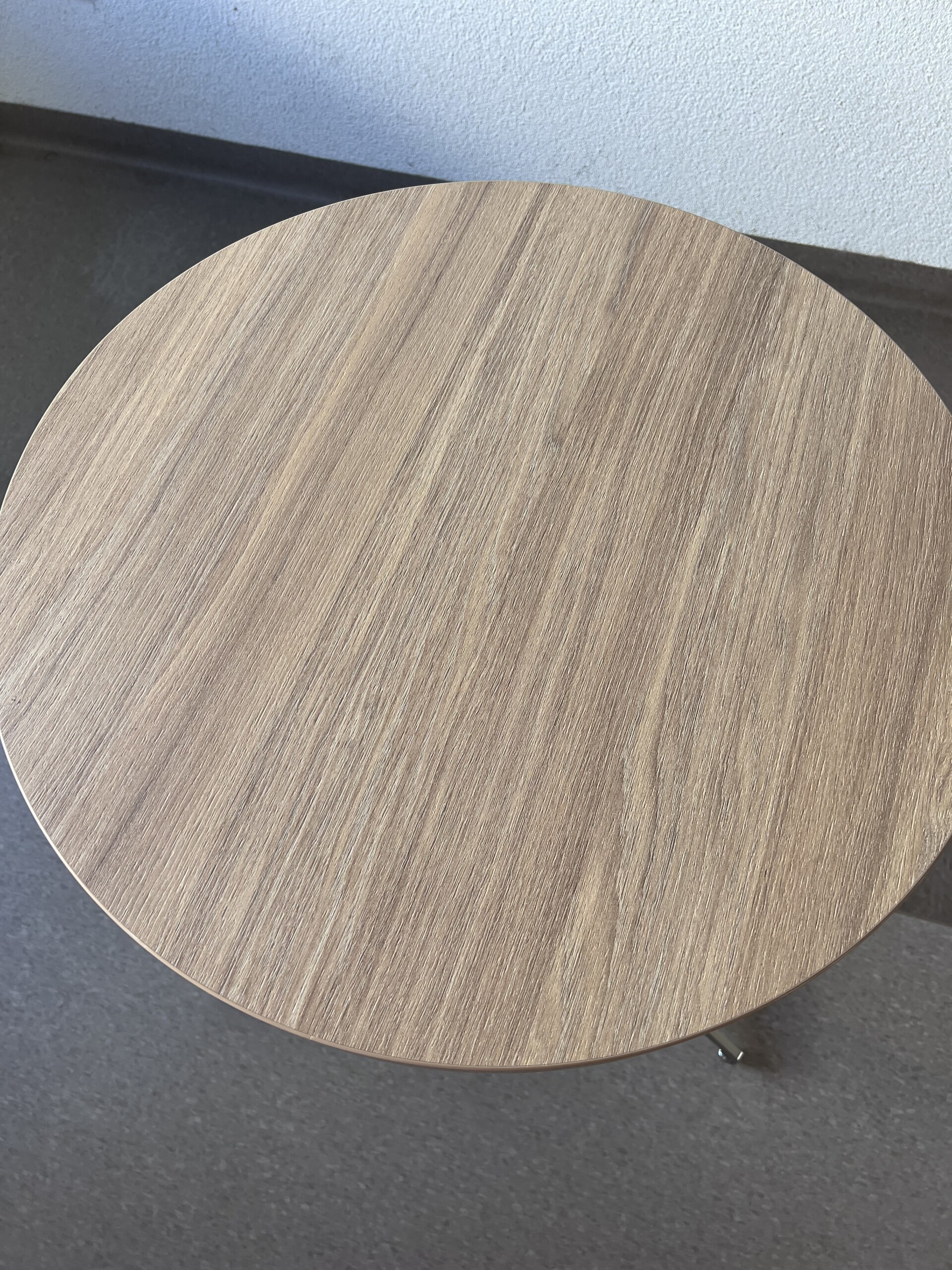 Bordplade i laminat (eg). Understel i metal (grå).