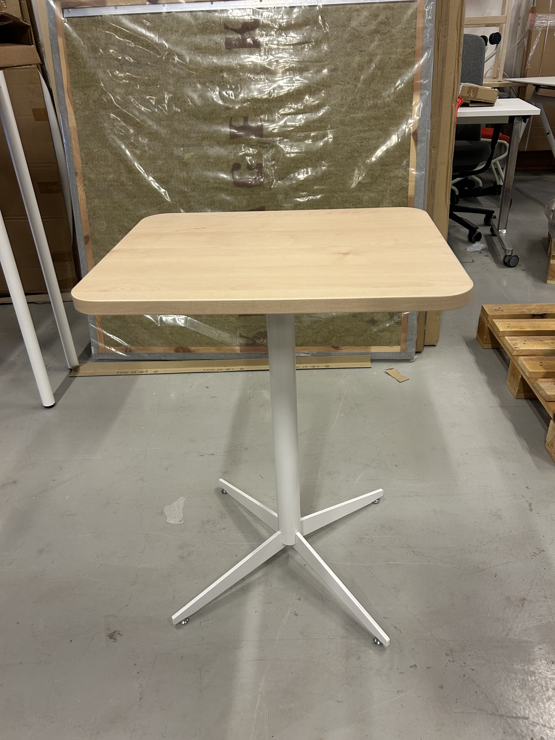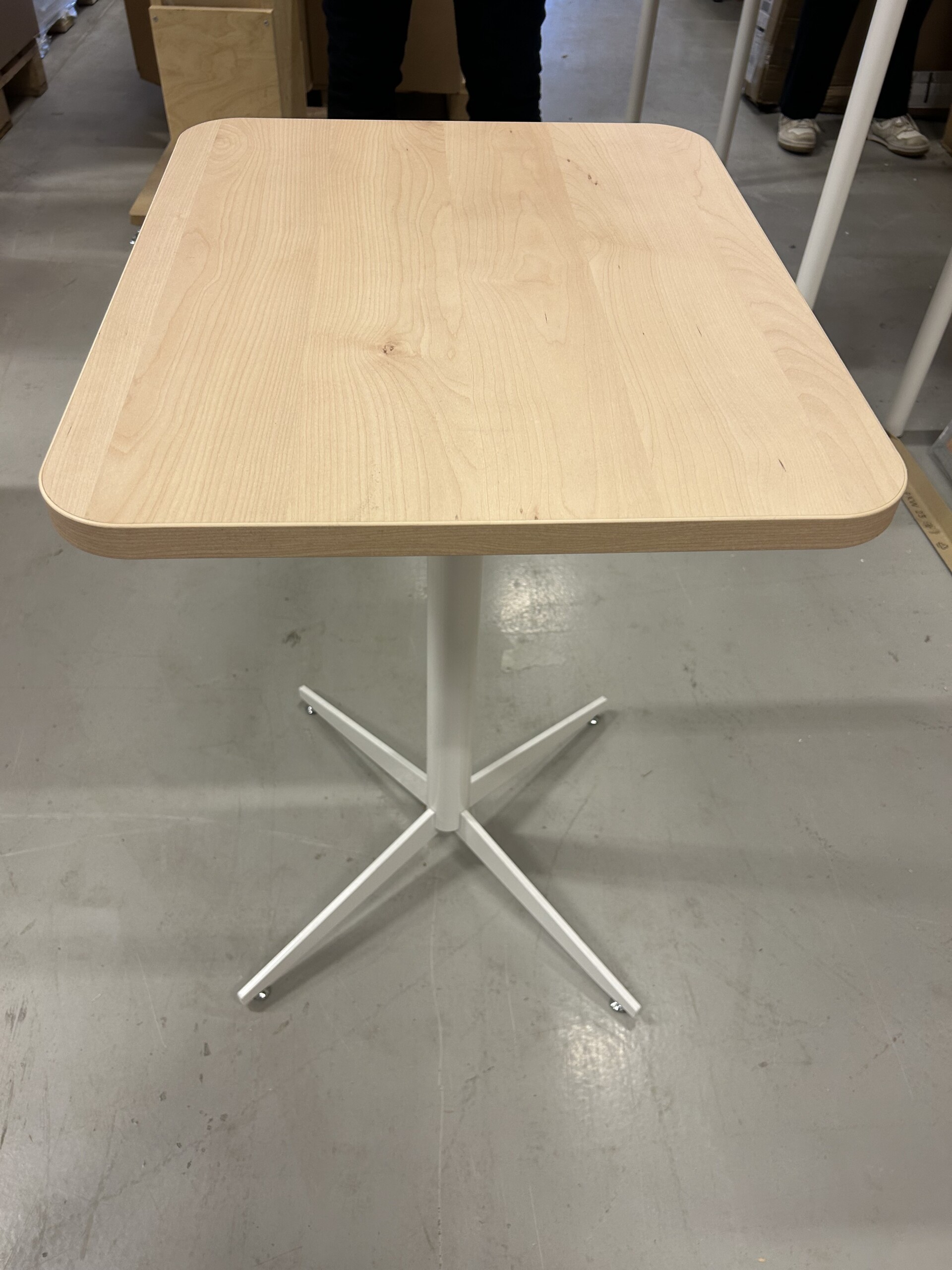 Bordplade i laminat (birk). Understel i metal (hvid).