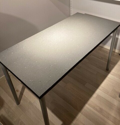 Bordplade i linoleum (grå). Understel i metal (grå).
