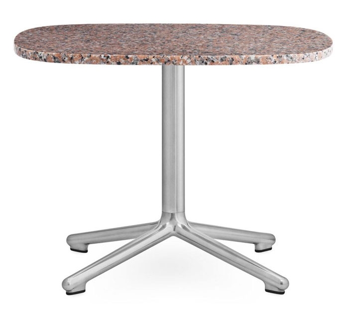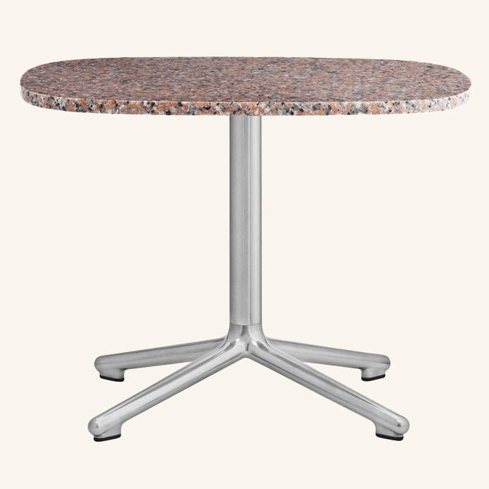 Bordplade i sten. Understel i metal (aluminium).