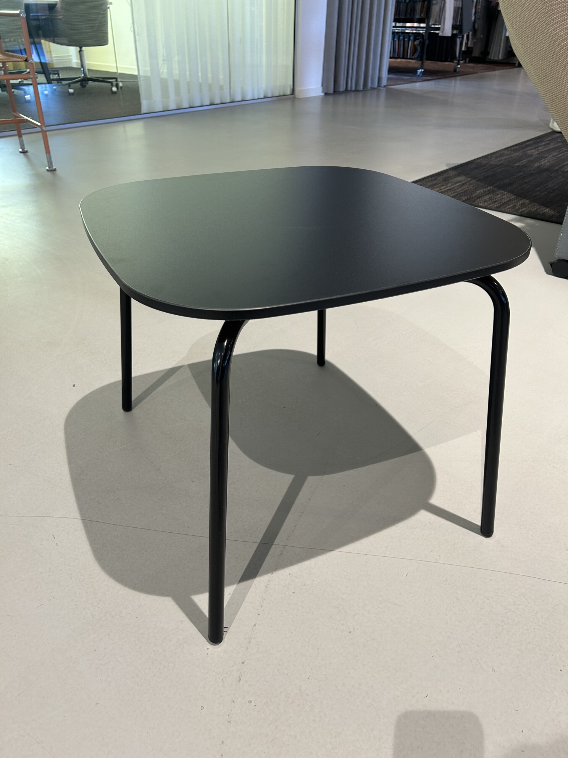 Bordplade i laminat (sort). Understel i metal (sort).