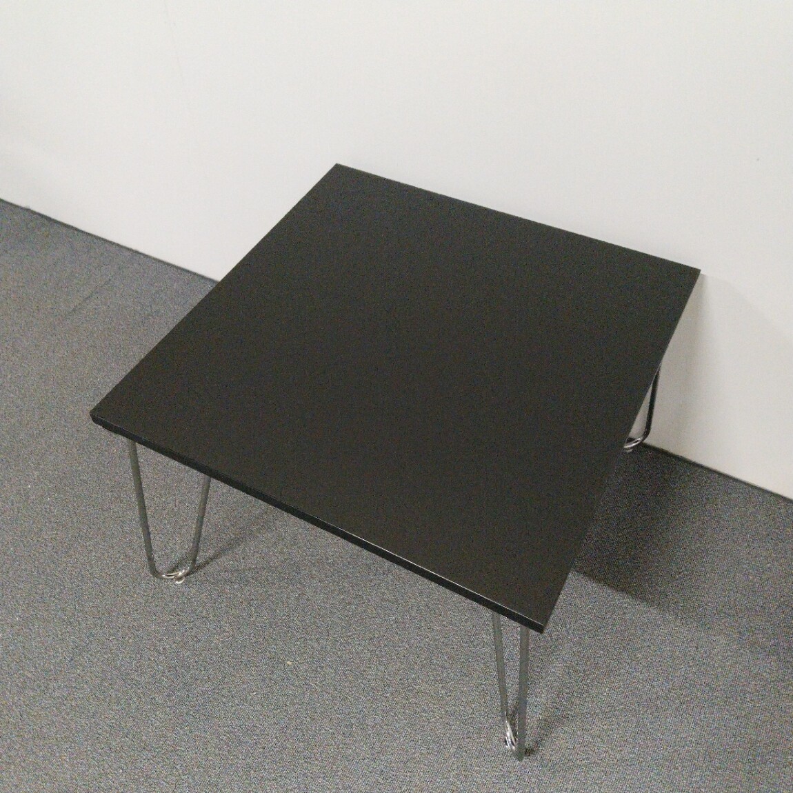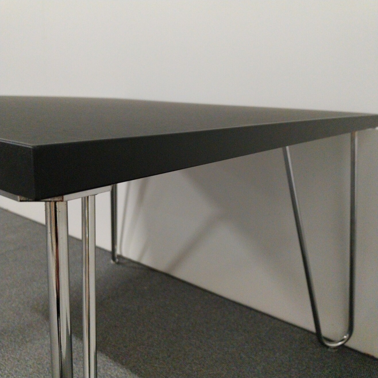 Bordplade i linoleum (sort). Understel i metal (krom).