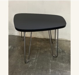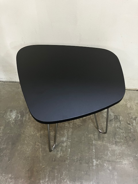Bordplade i linoleum (sort). Understel i metal (krom).
