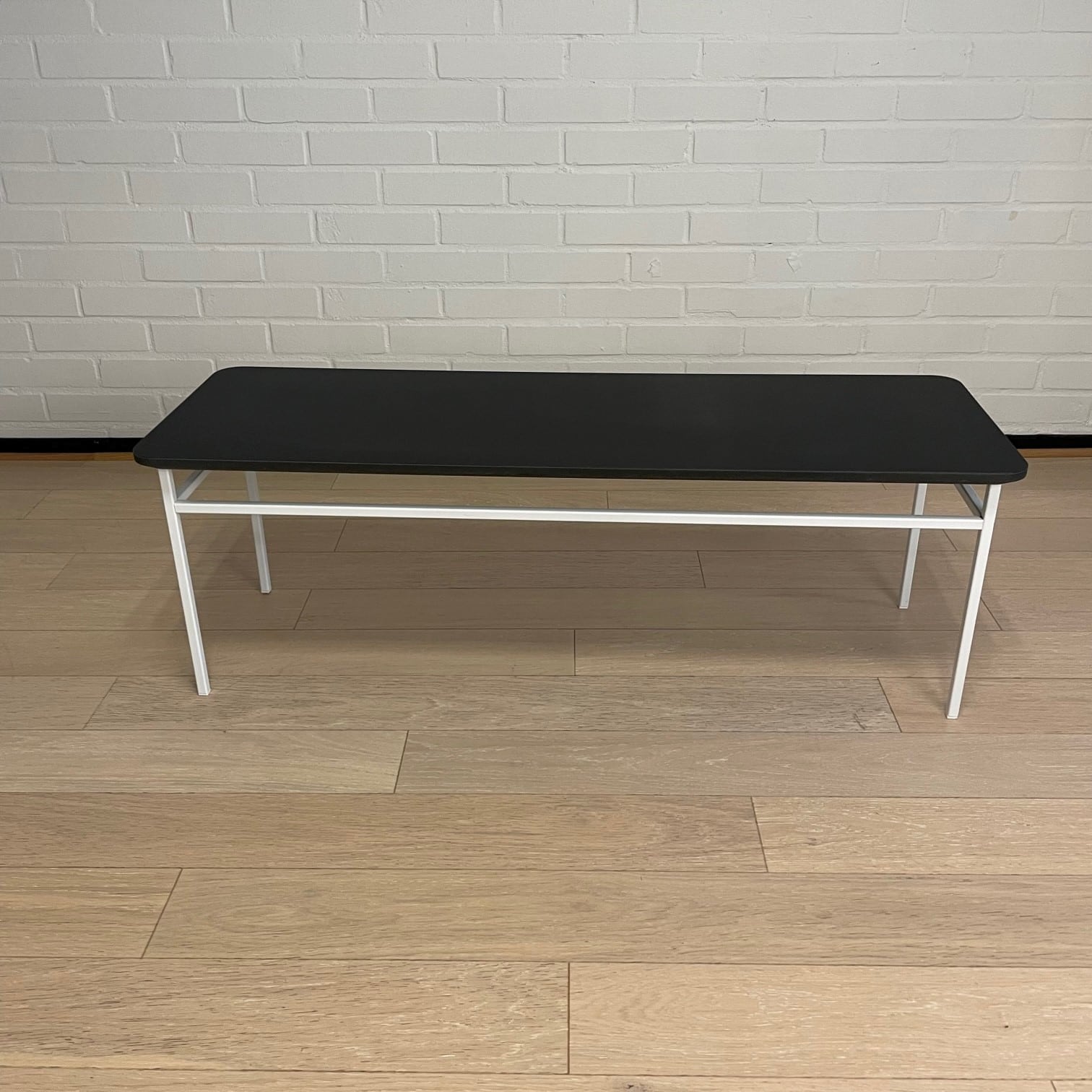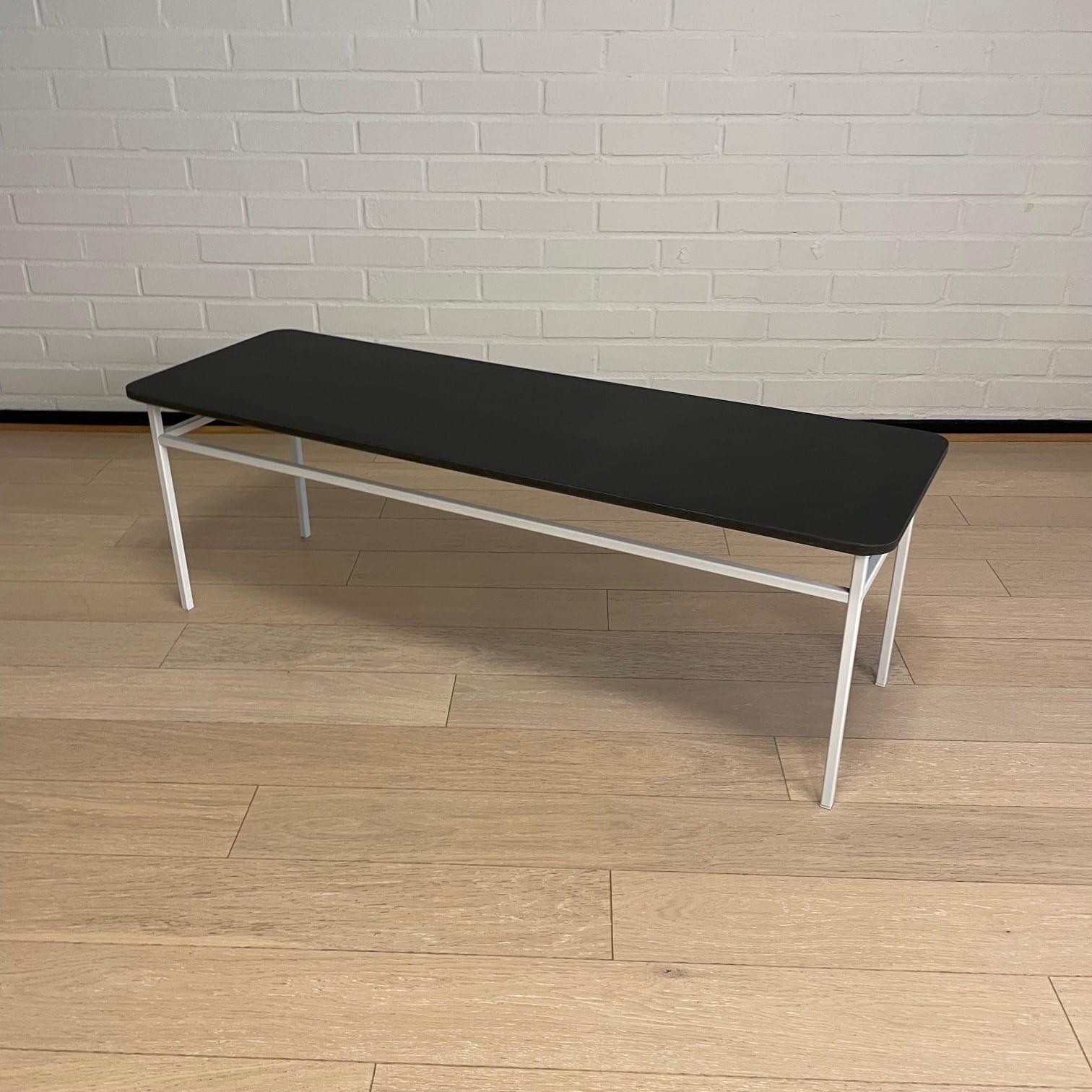 Bordplade i kompositmateriale (sort). Understel i metal (hvid).
