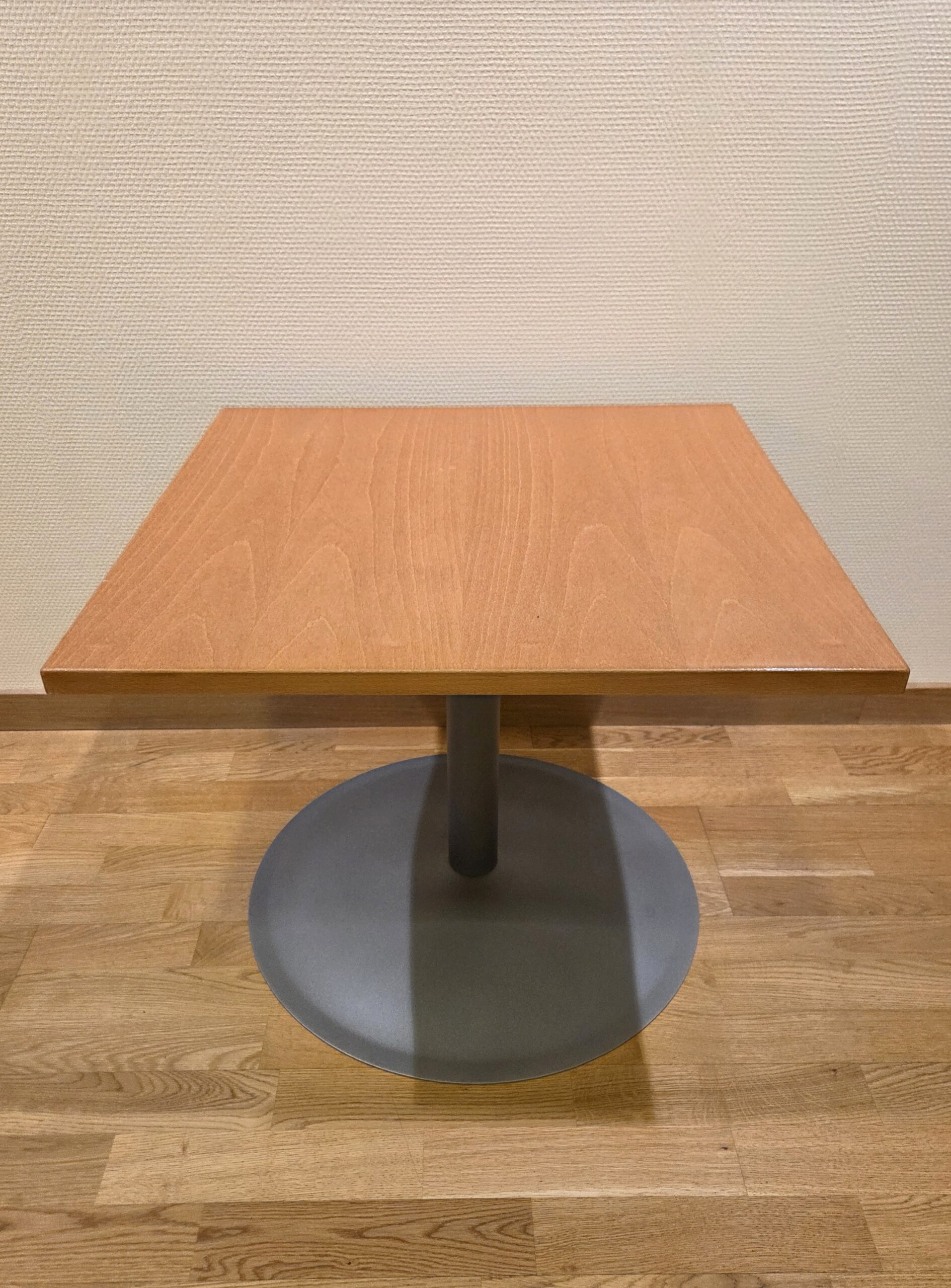 Bordplade i træ. Understel i metal (grå).