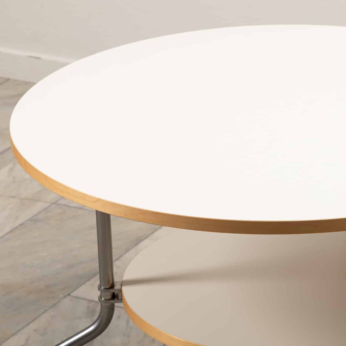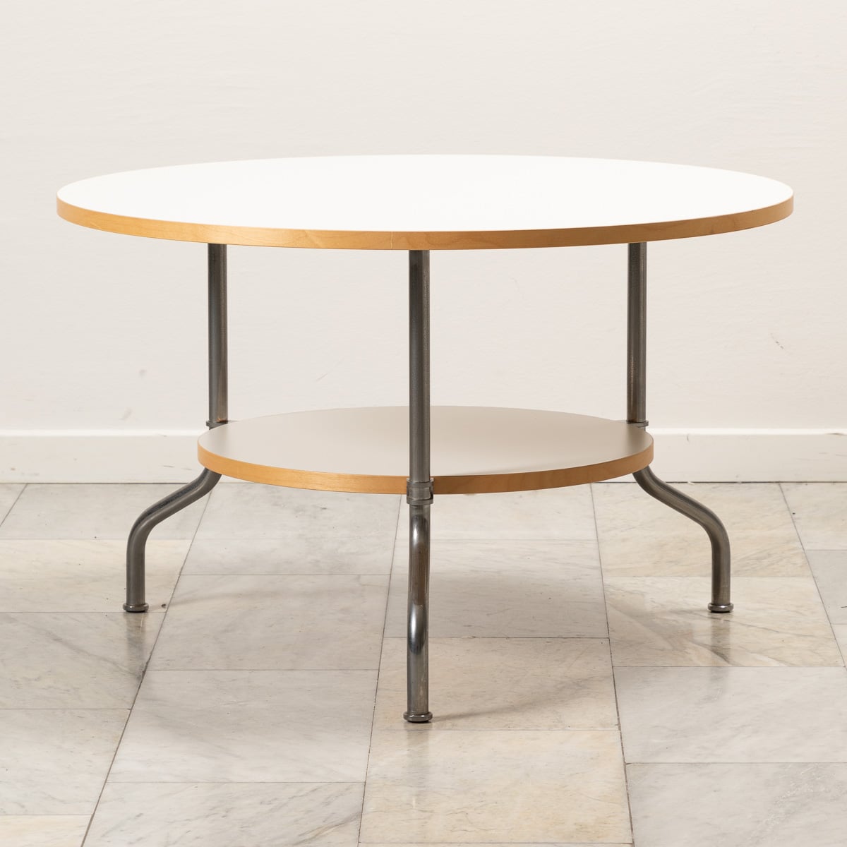 Bordplade i laminat (hvid). Understel i metal (aluminium).