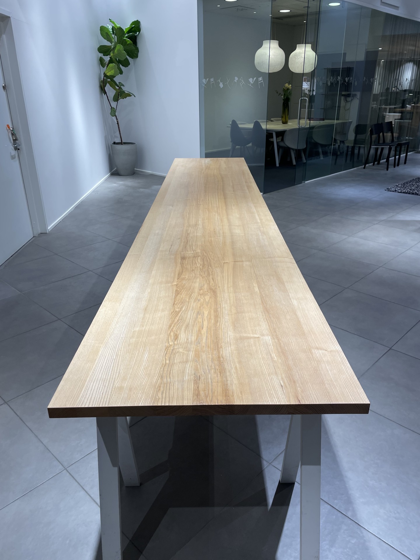 Bordplade i træ (birk). Understel i træ.