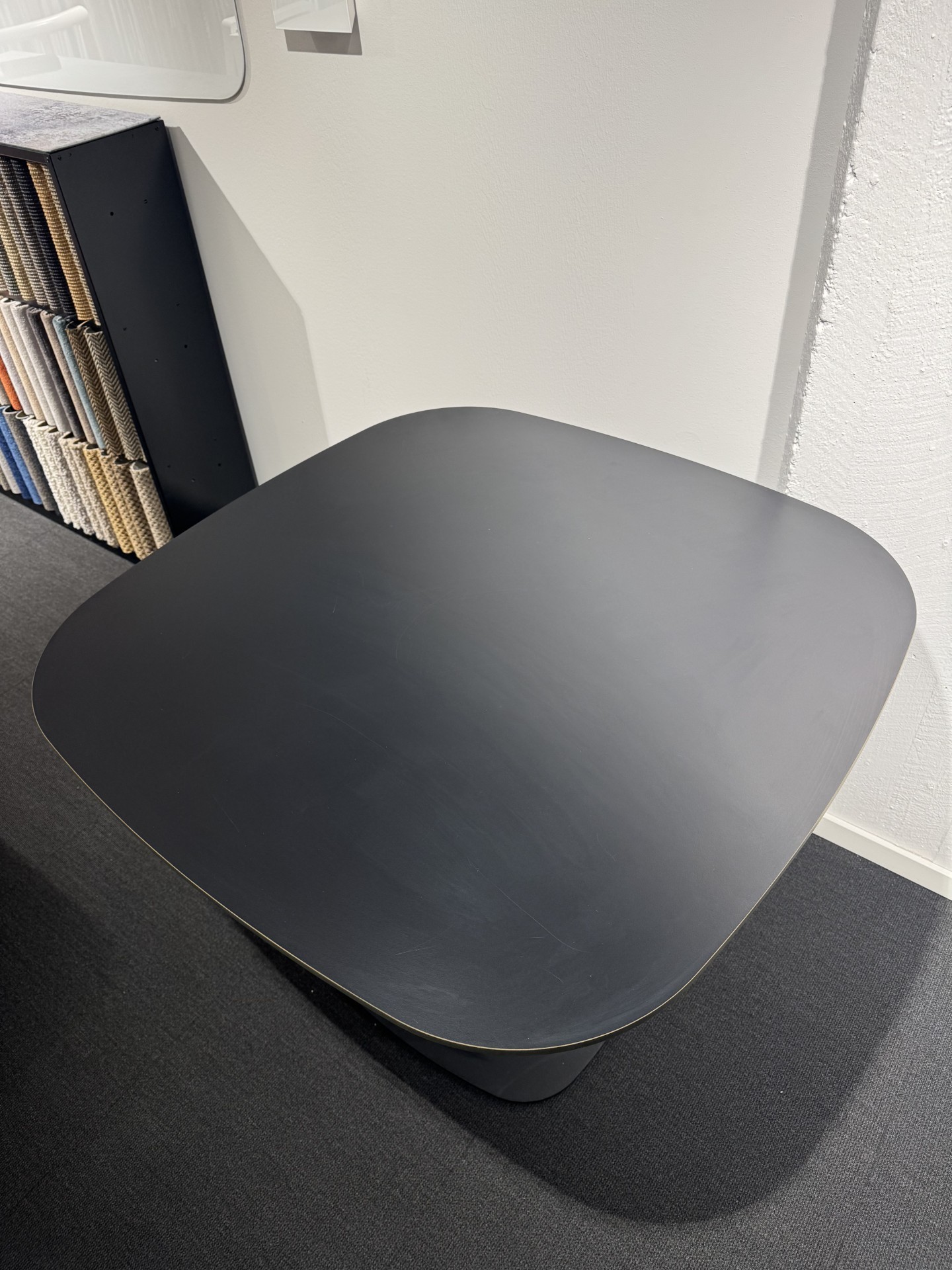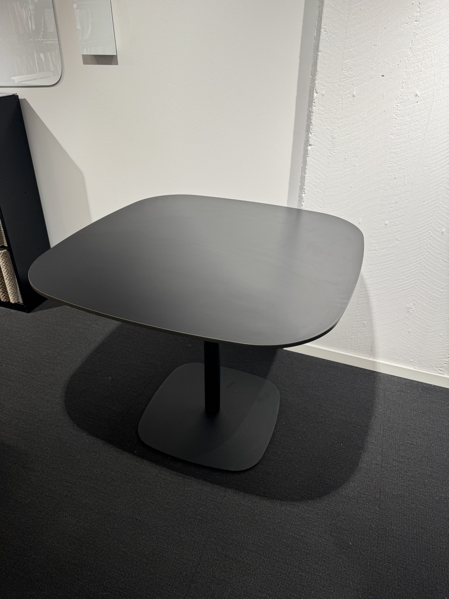 Bordplade i laminat (sort). Understel i metal (sort).