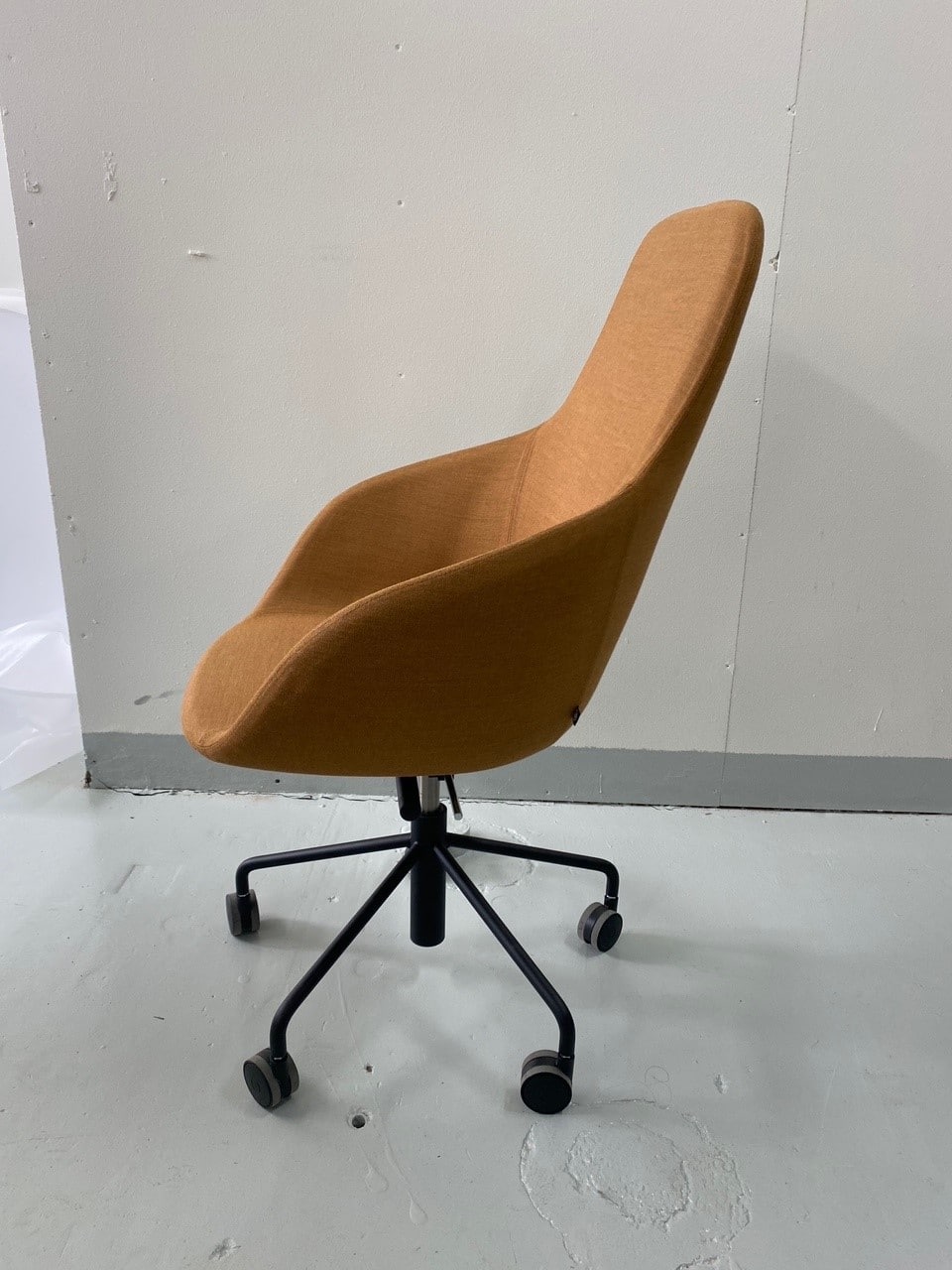 Sæde og ryg i stof (gul). Fodkryds i metal (sort). Højdejusterbar.
