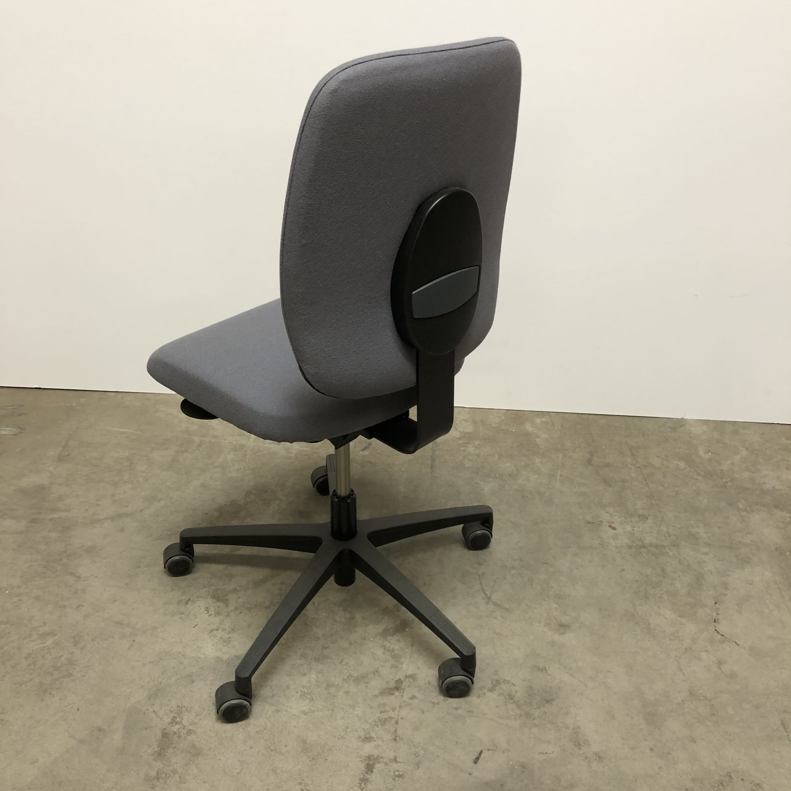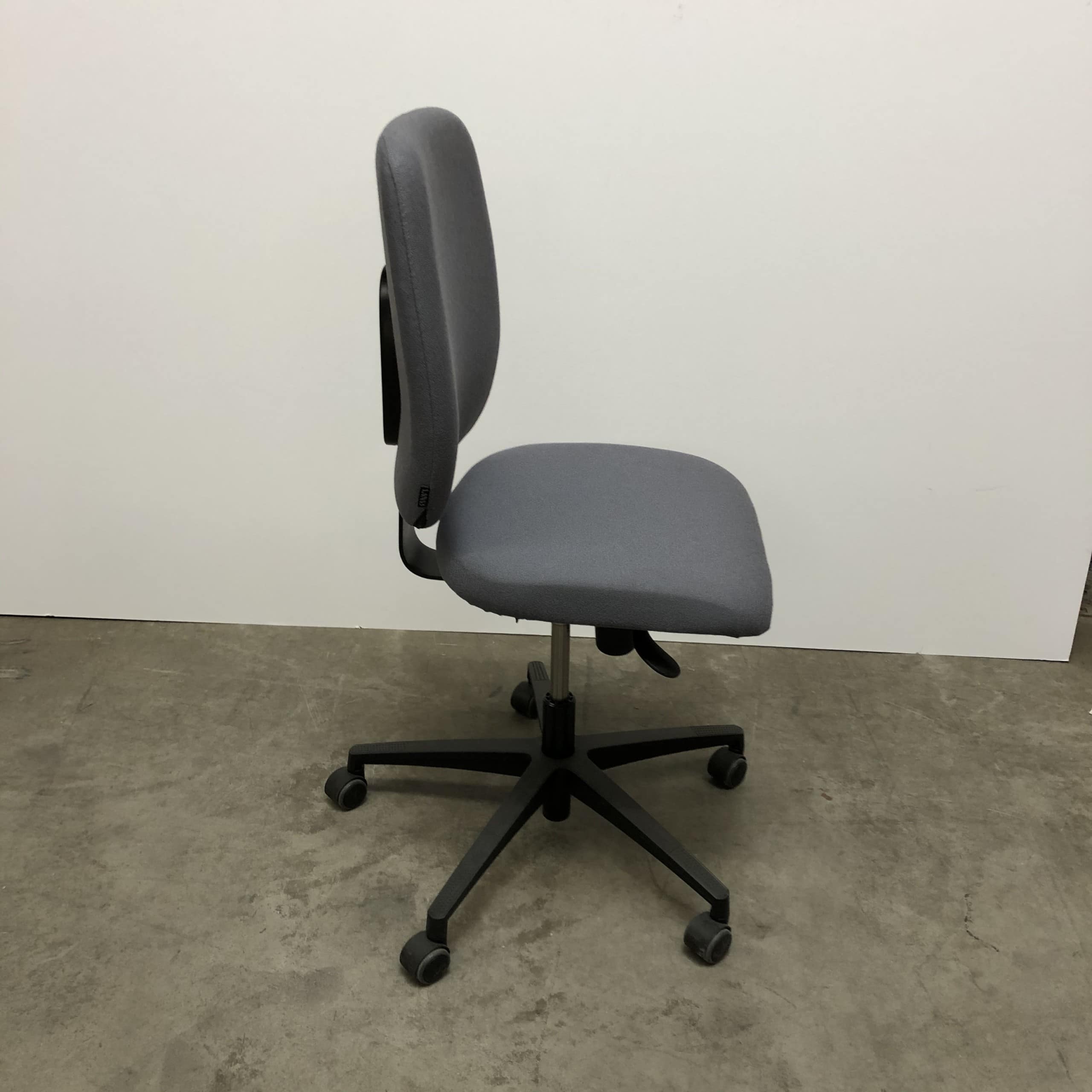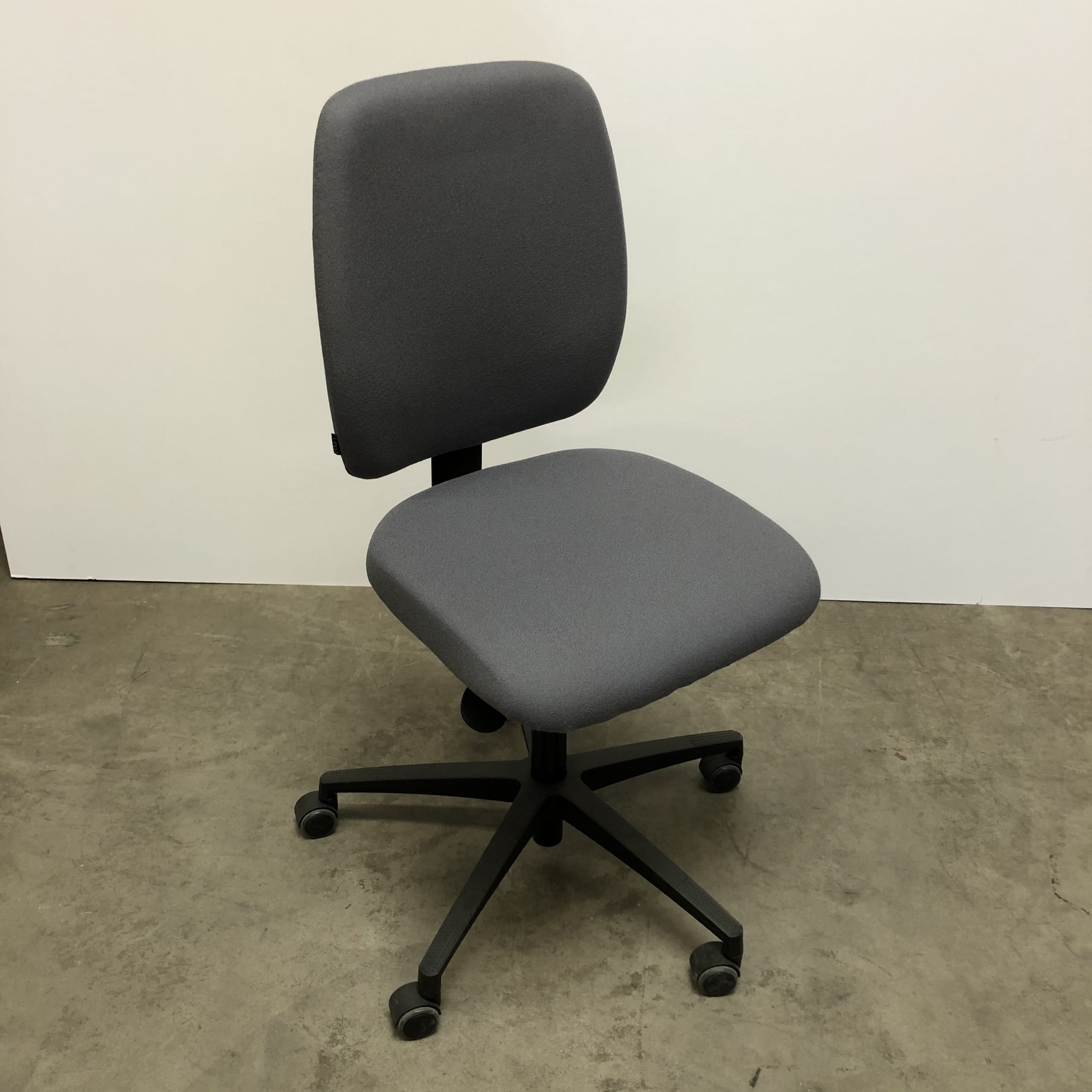 Sæde og ryg i stof (grå). Fodkryds i plast (sort). Højdejusterbar.