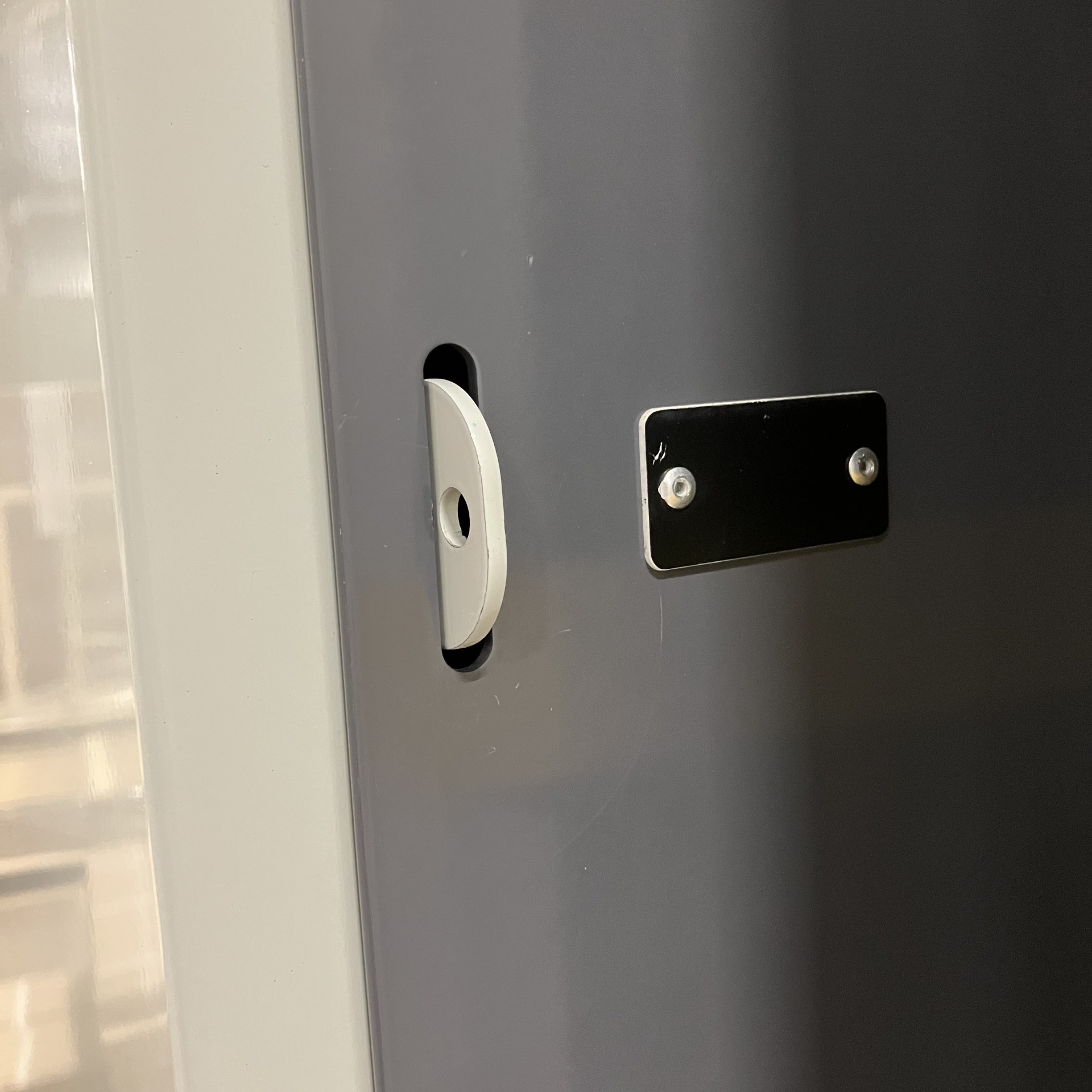 Stamme i metall (grå). Front i metall (grå).