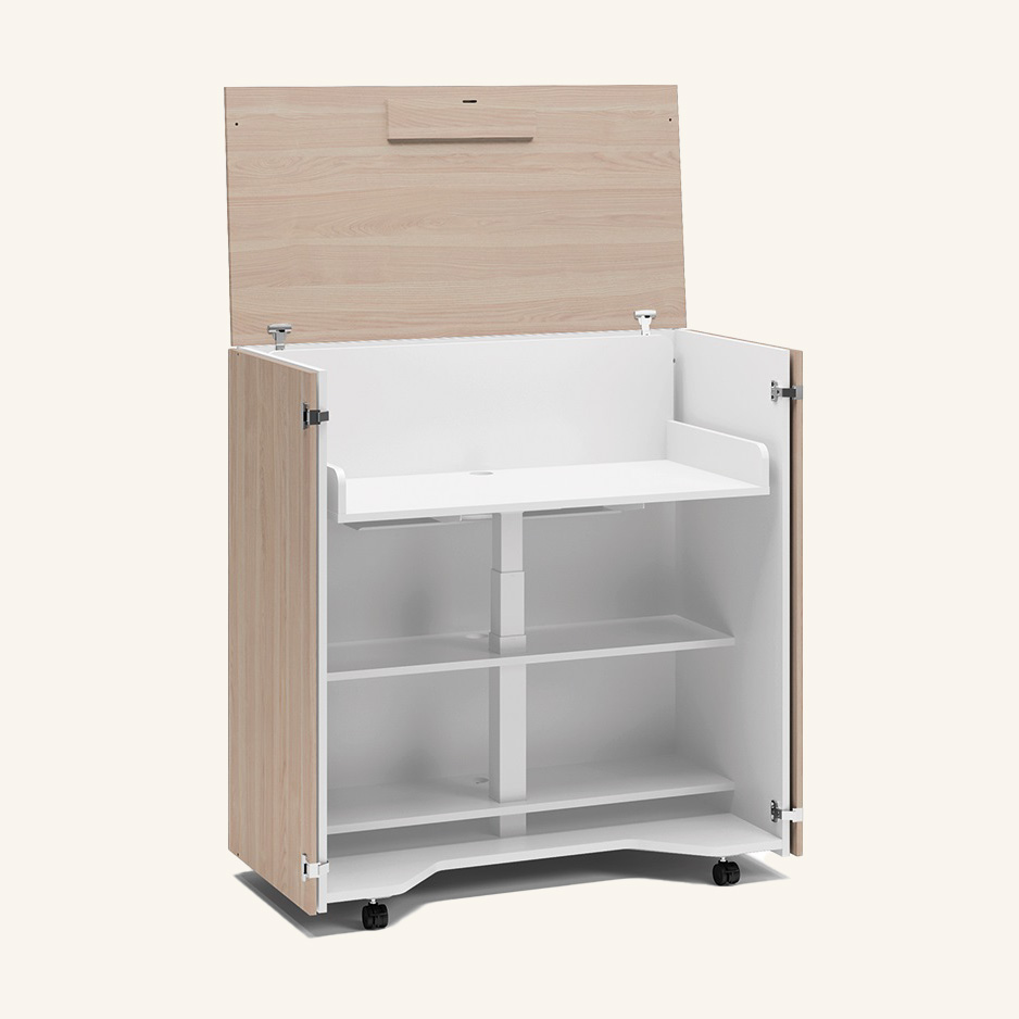 Stamme i laminat (hvid). Front i laminat (ask).