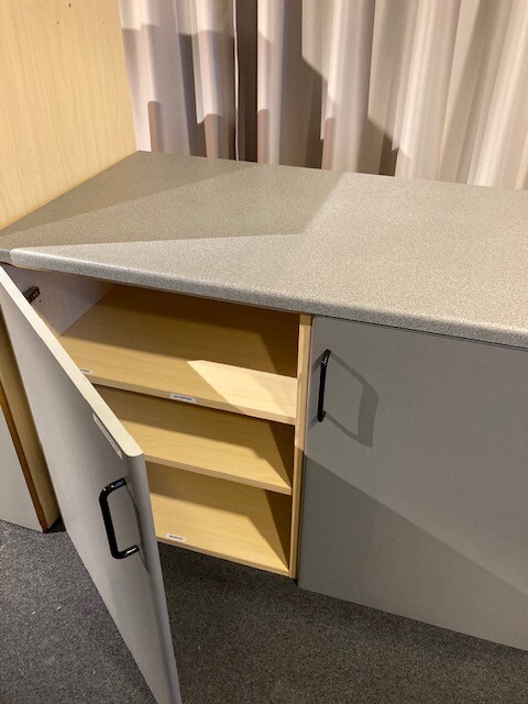 Stamme i laminat (grå). Front i laminat (grå).
