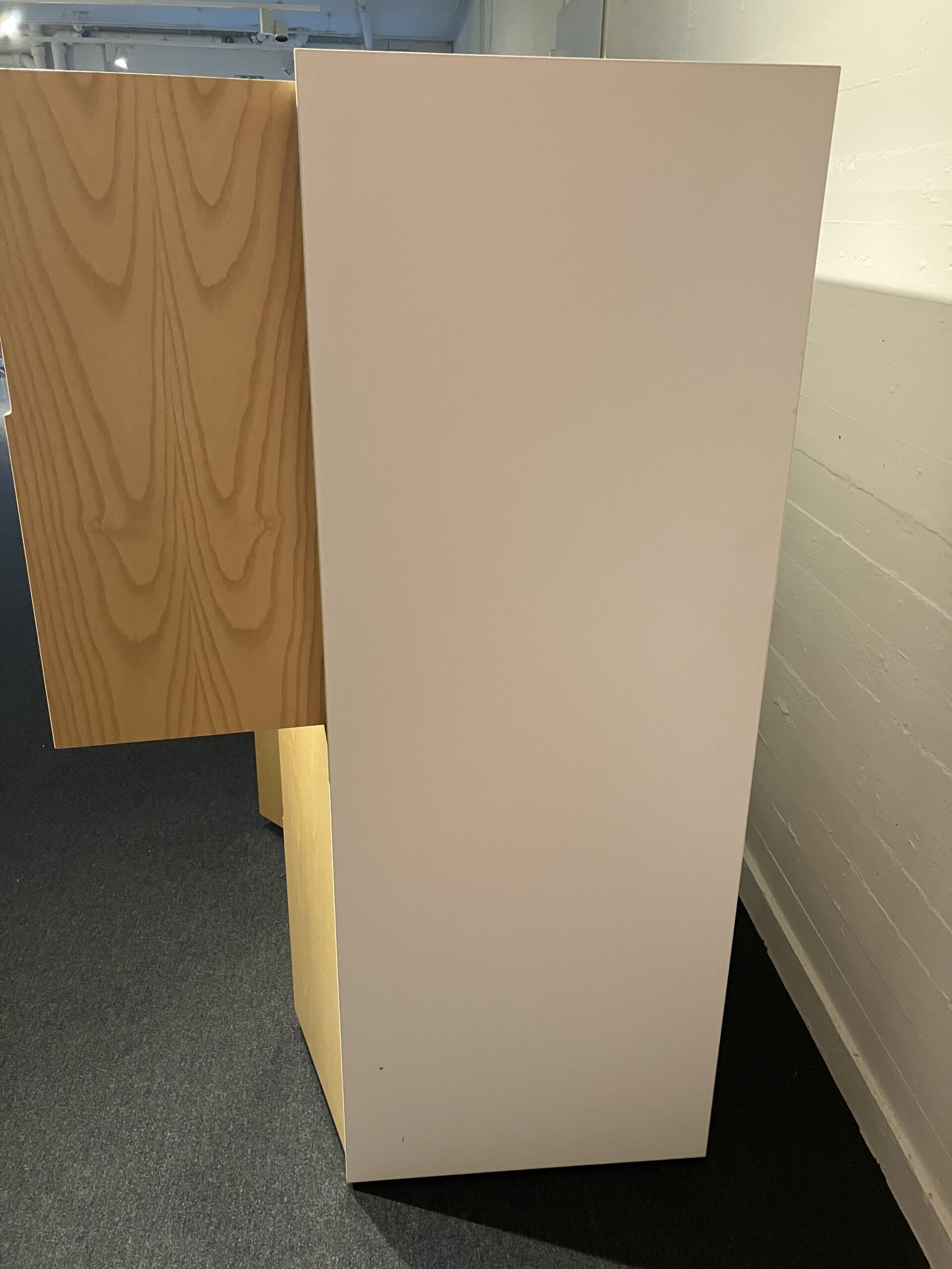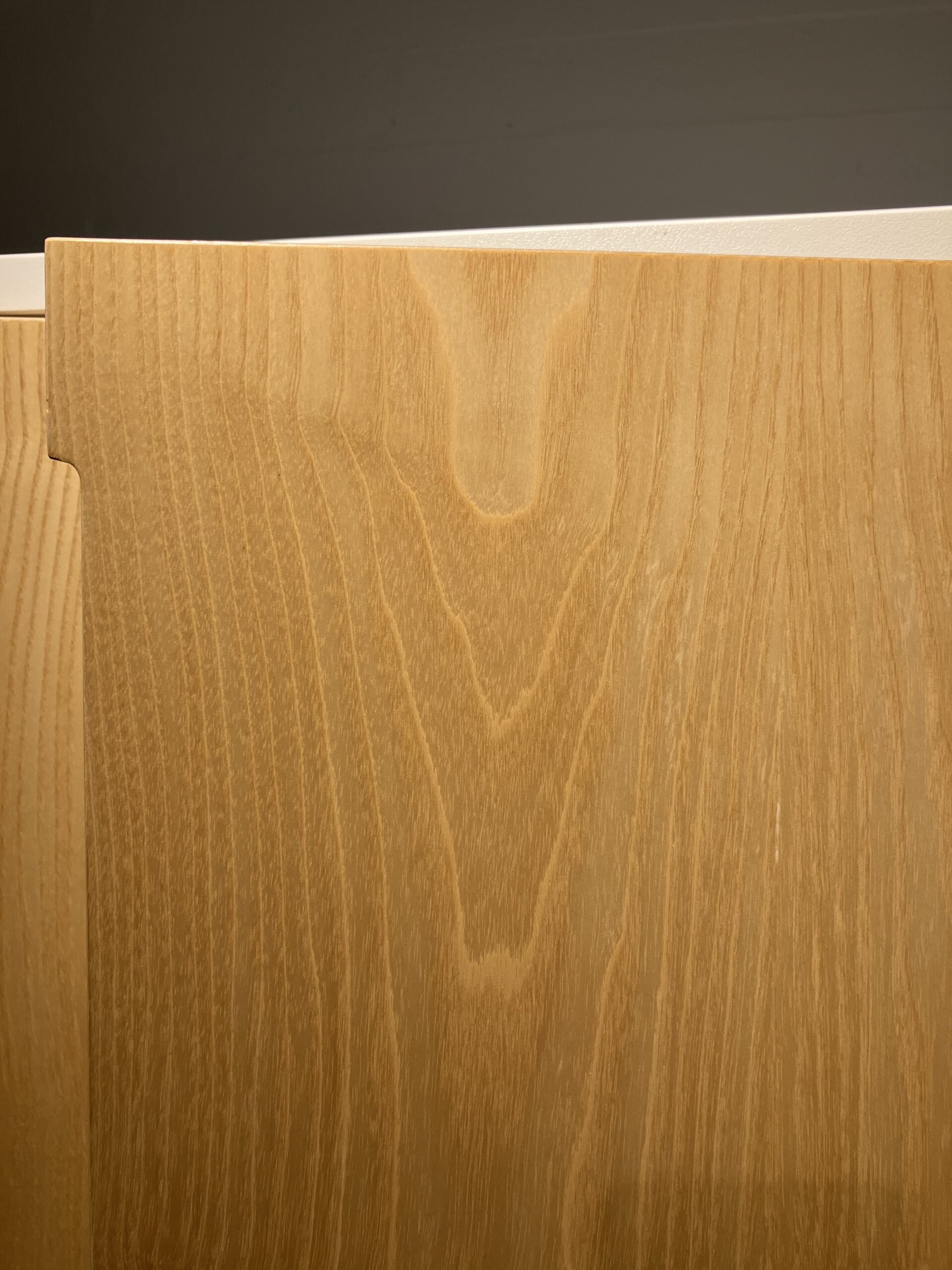 Stamme i laminat (hvid). Front i trä (birk).