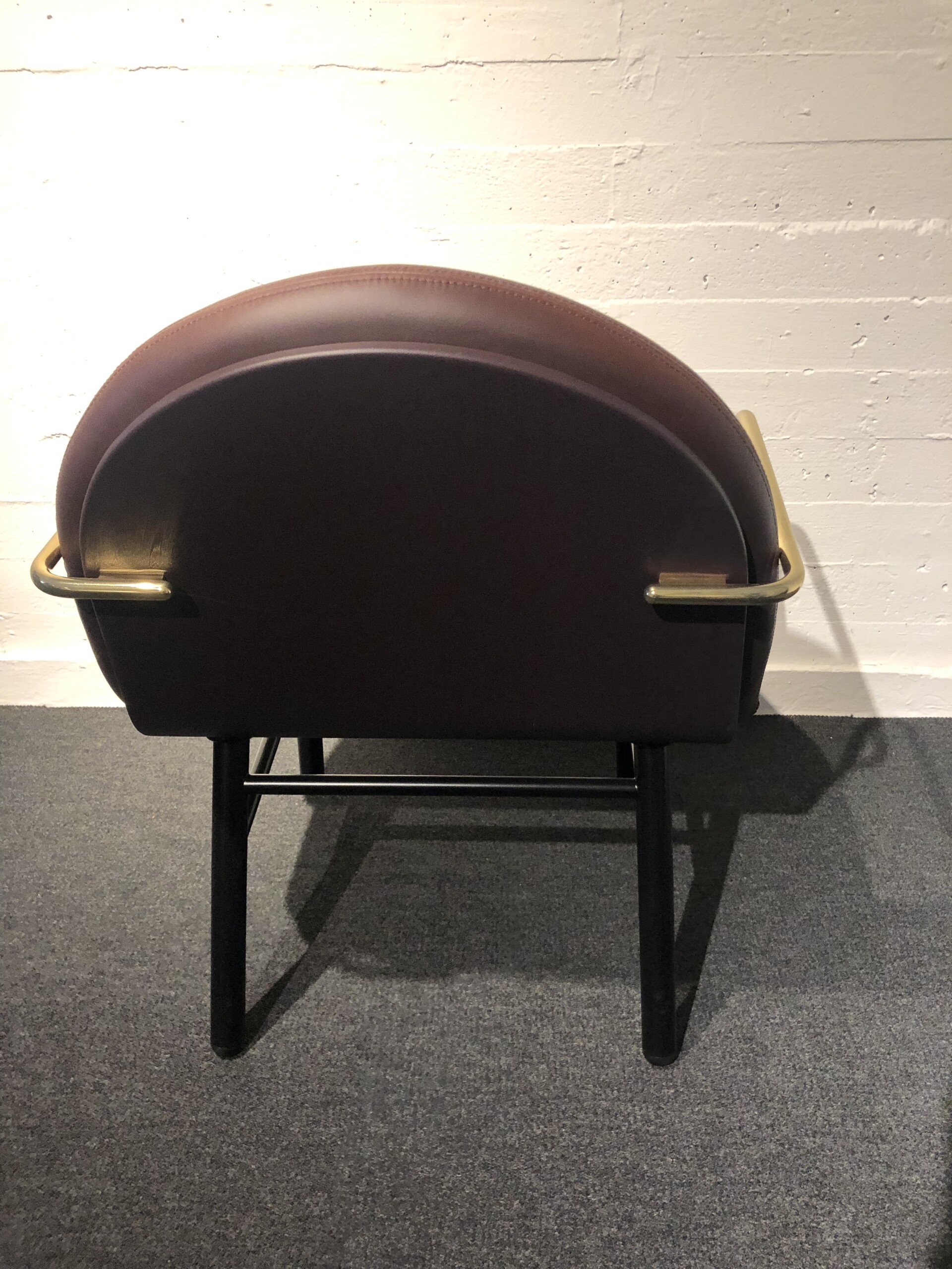 Sæde og ryg i kunstlæder (brun). 4-bensstel i metal (sort).