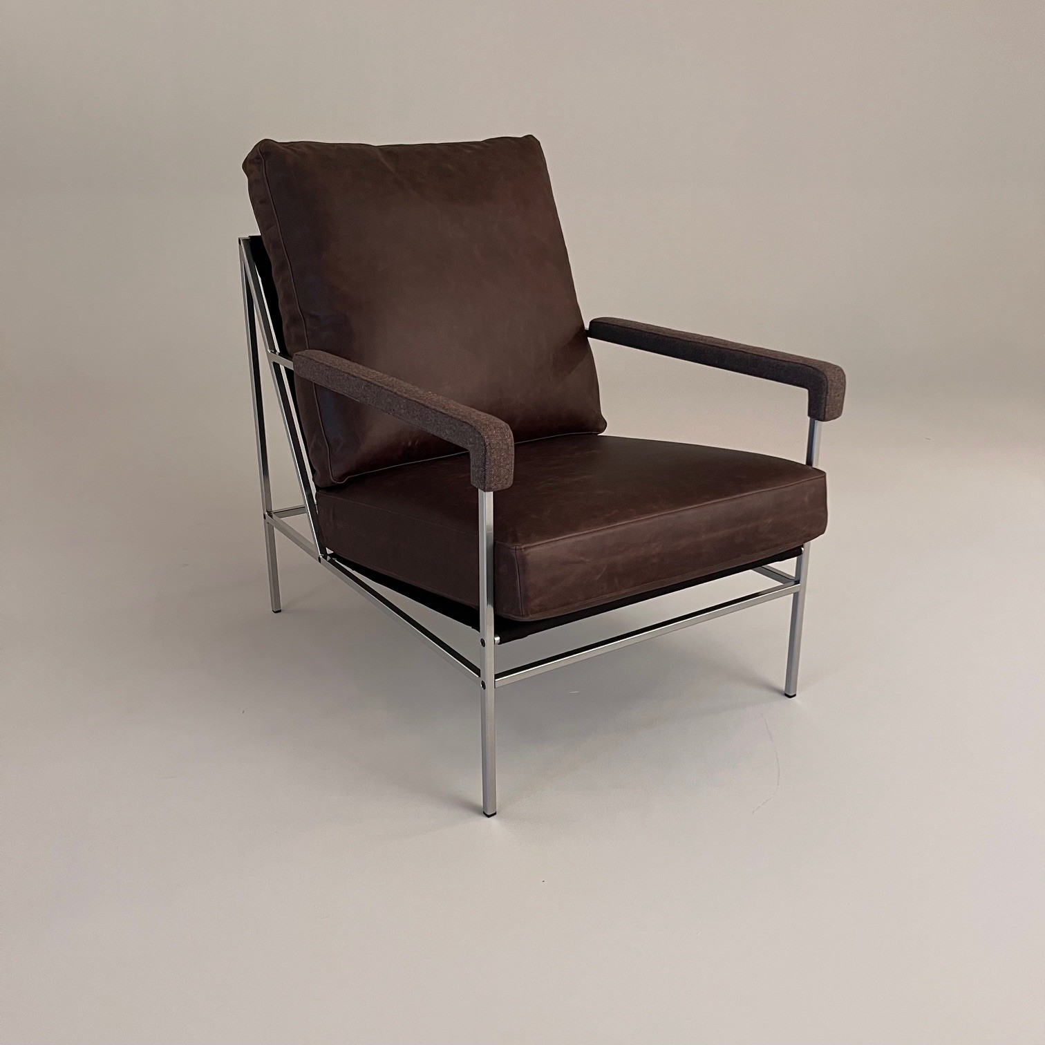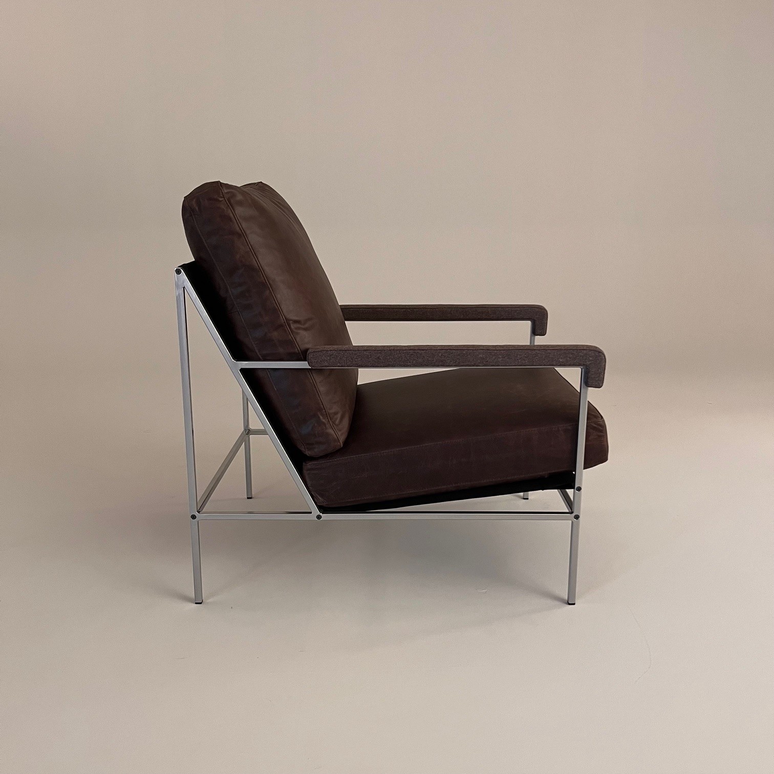 Sæde og ryg i læder (brun). 4-bensstel i metal (sølv).