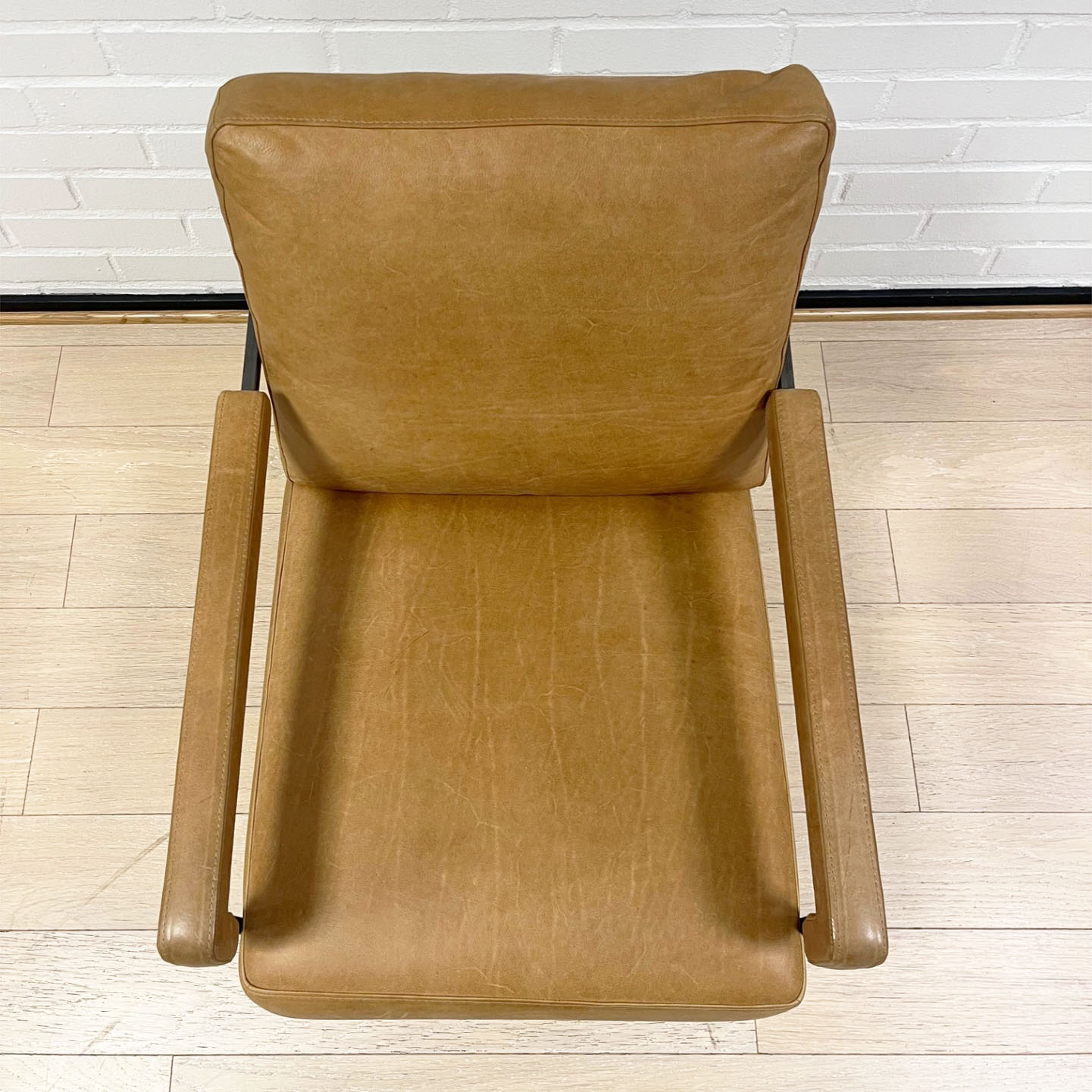 Sæde og ryg i læder (brun). 4-bensstel i metal (grå).