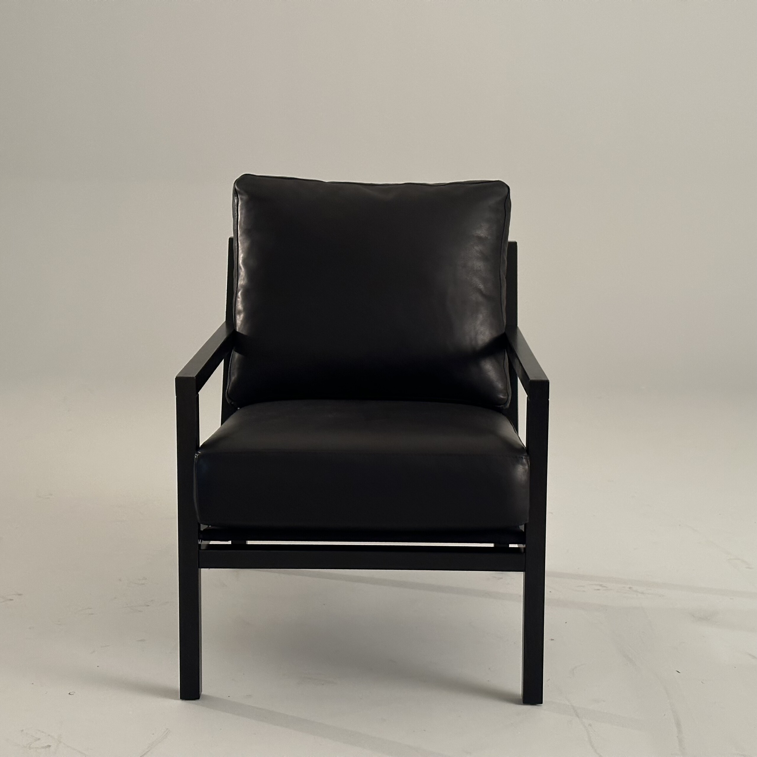 Sæde og ryg i læder (sort). 4-bensstel i træ (sort).