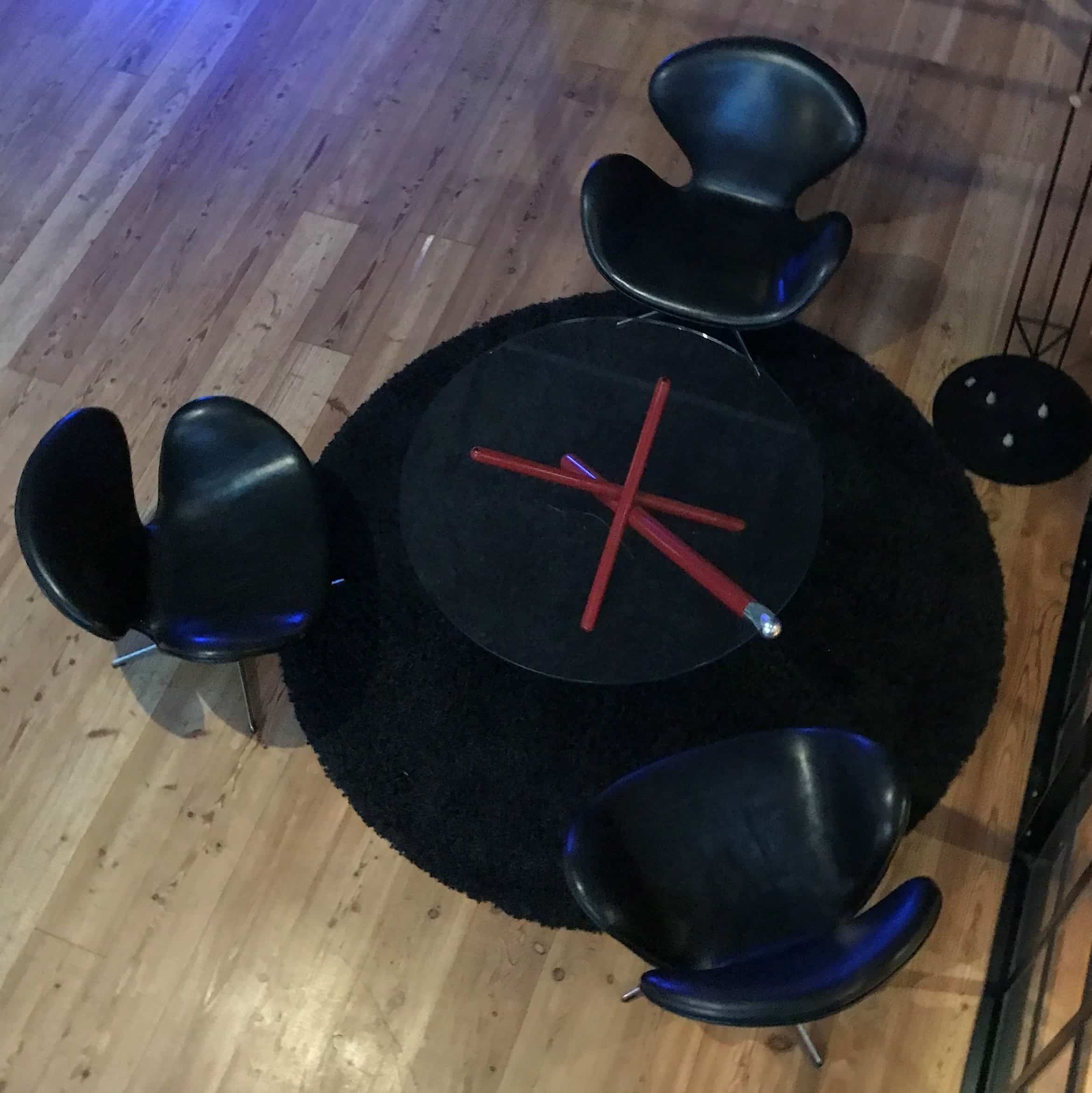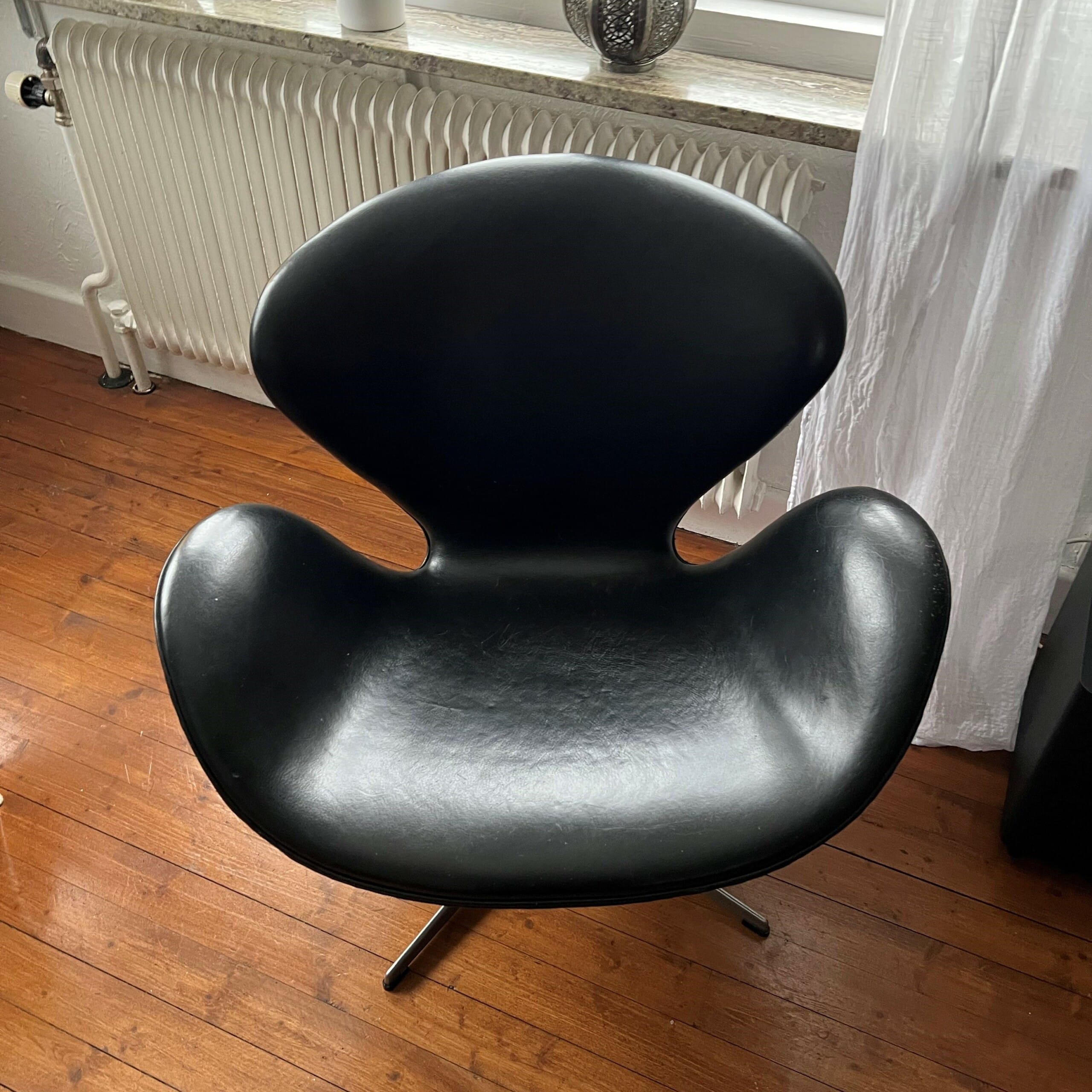 Sæde og ryg i læder (sort). Fodkryds i metal (rustfri).