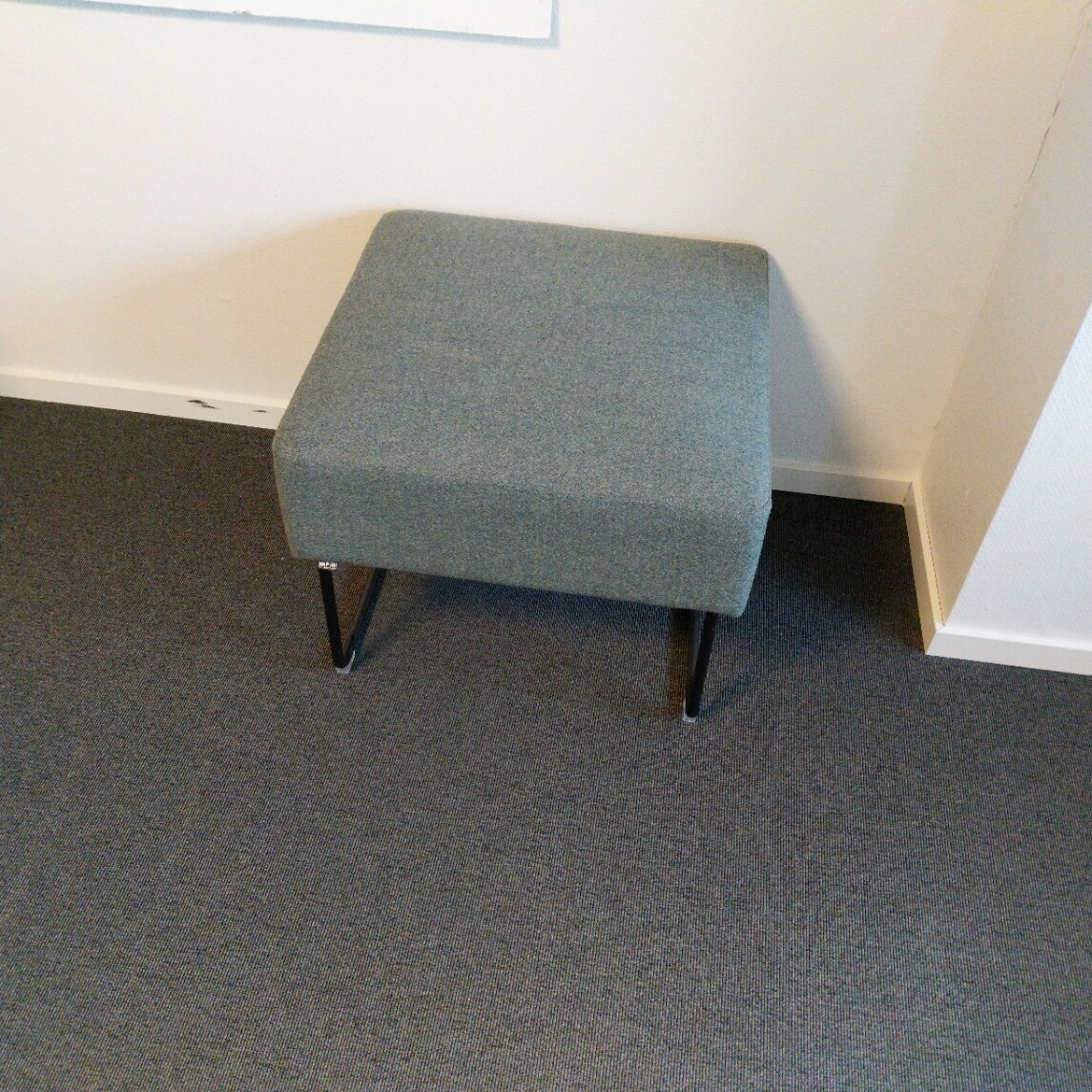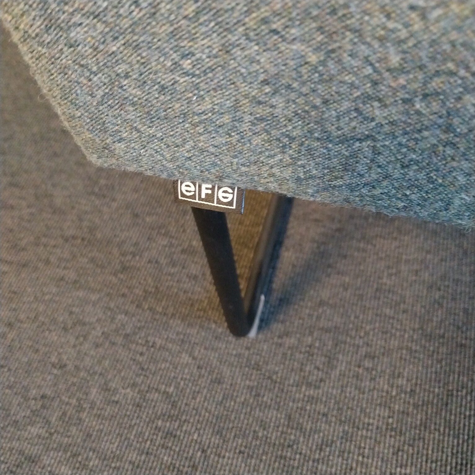 Sæde i stof (grøn). Medestel i metal (sort).