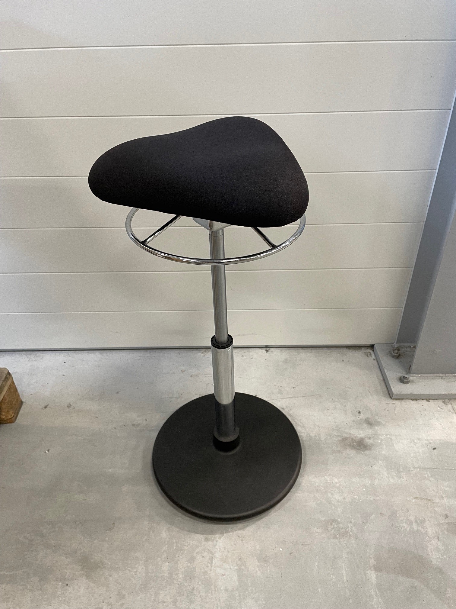 Sæde i stof (sort). Søjlefod i metal (sort).