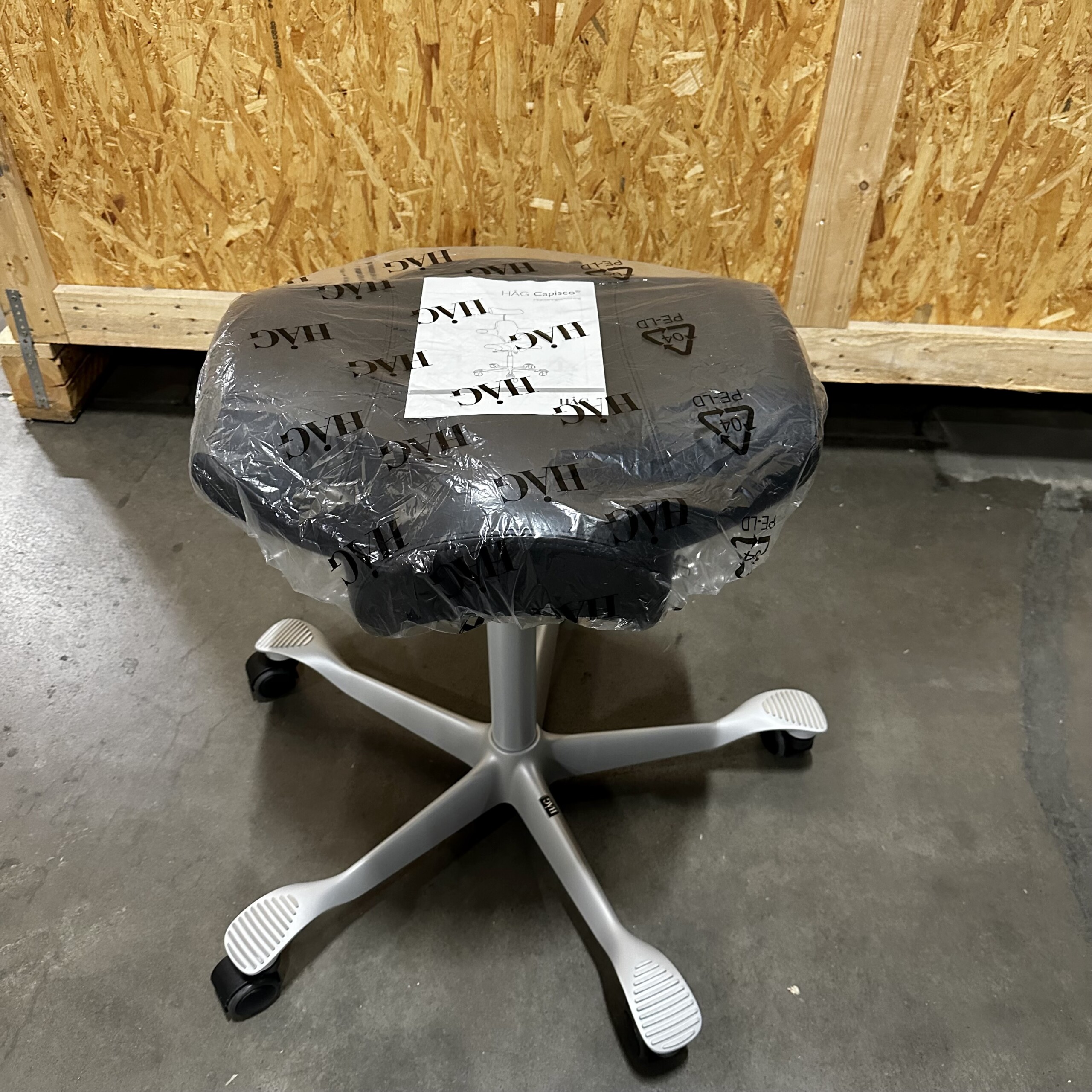 Sæde i kunstlæder (sort). Fodkryds i metal (sølv). Højdejusterbar.