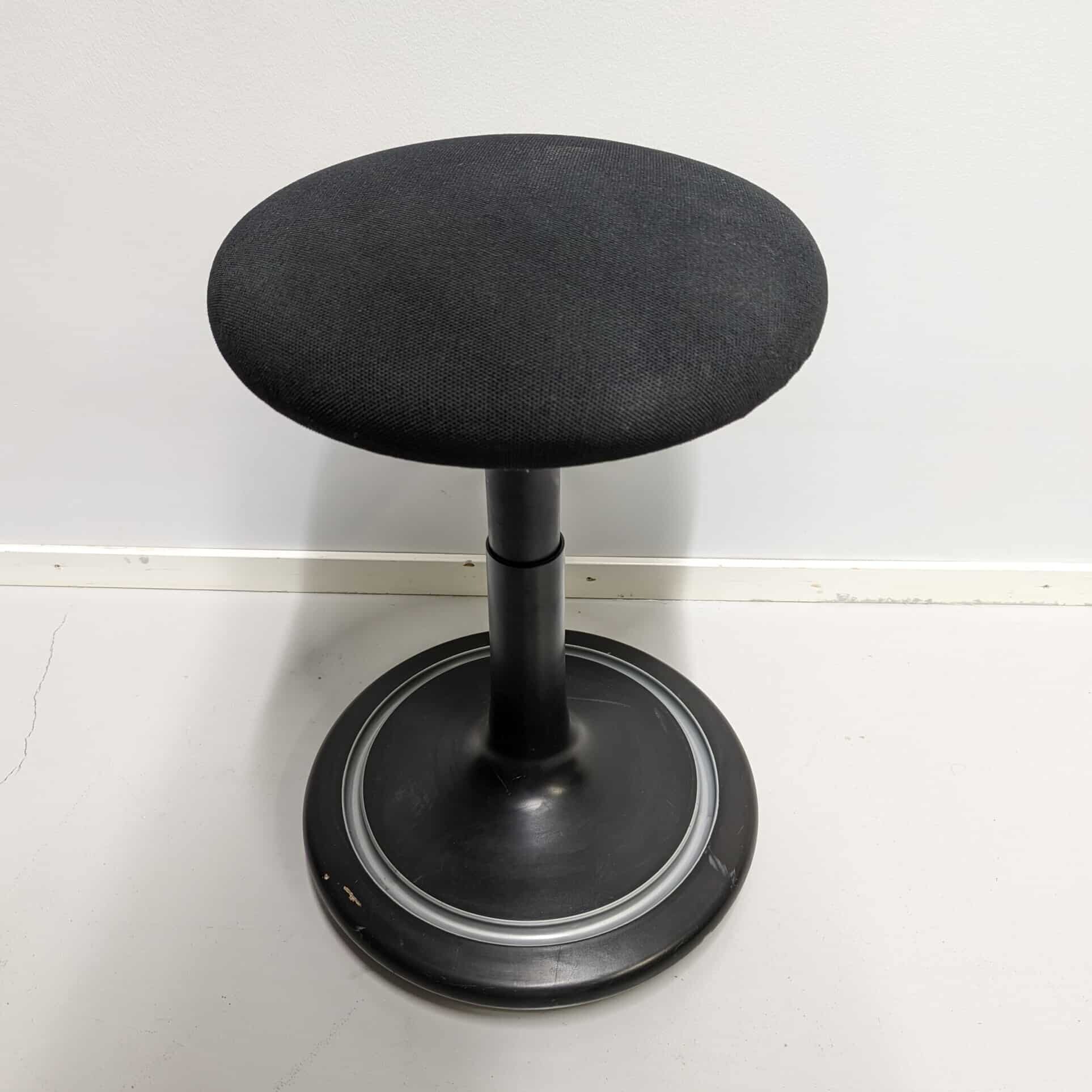 Sæde i stof (sort). Søjlefod i metal (sort).