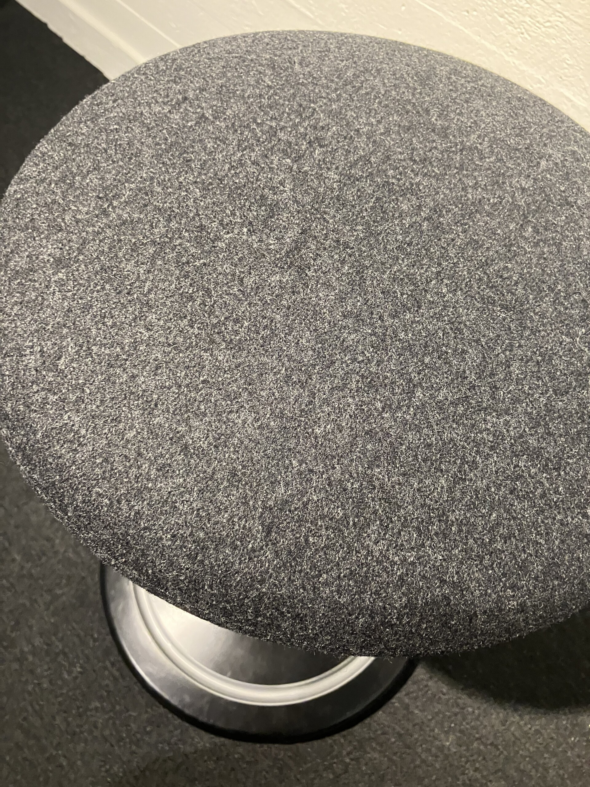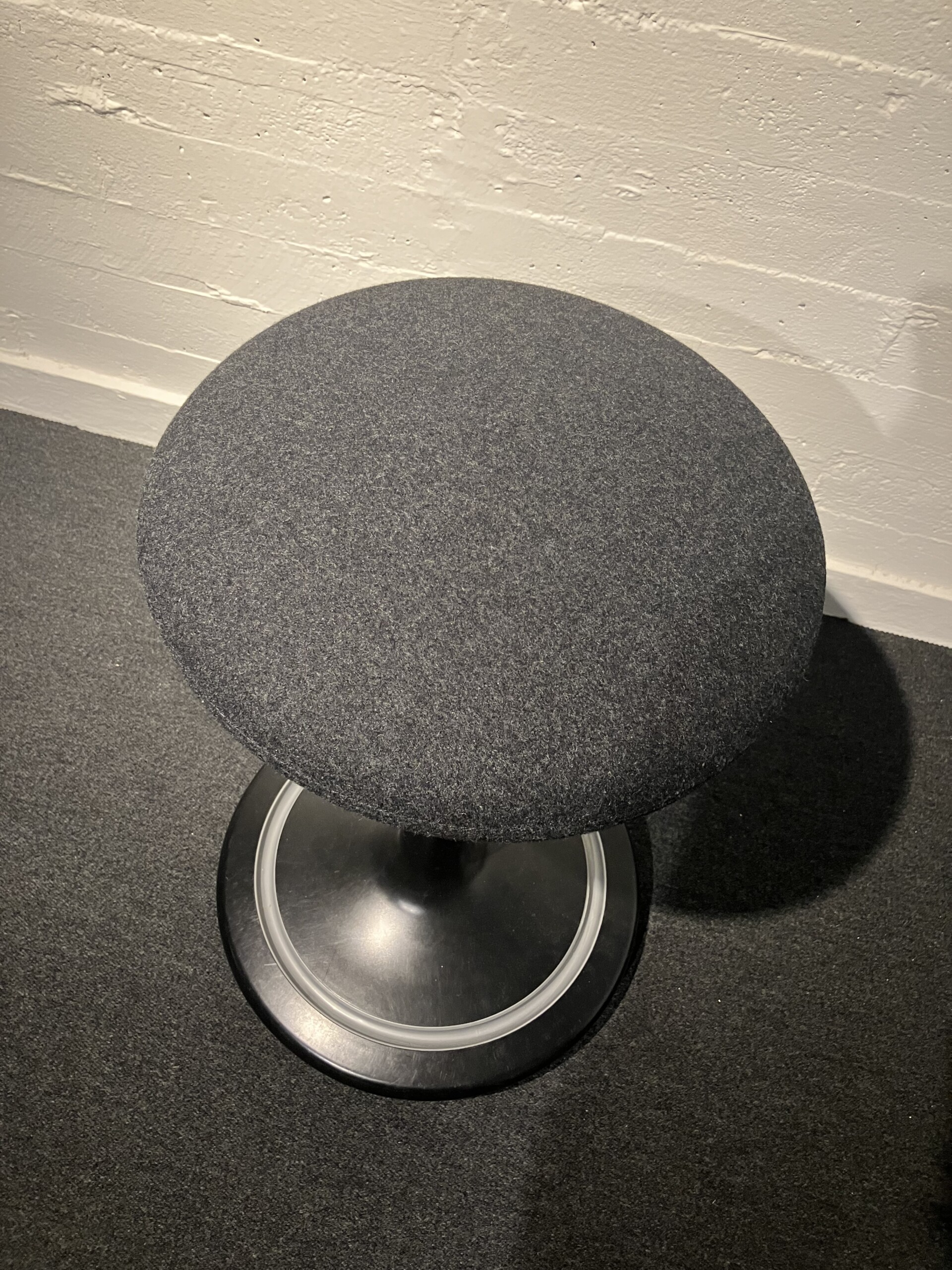 Sæde i stof (grå). Søjlefod i metal (sort). Højdejusterbar.