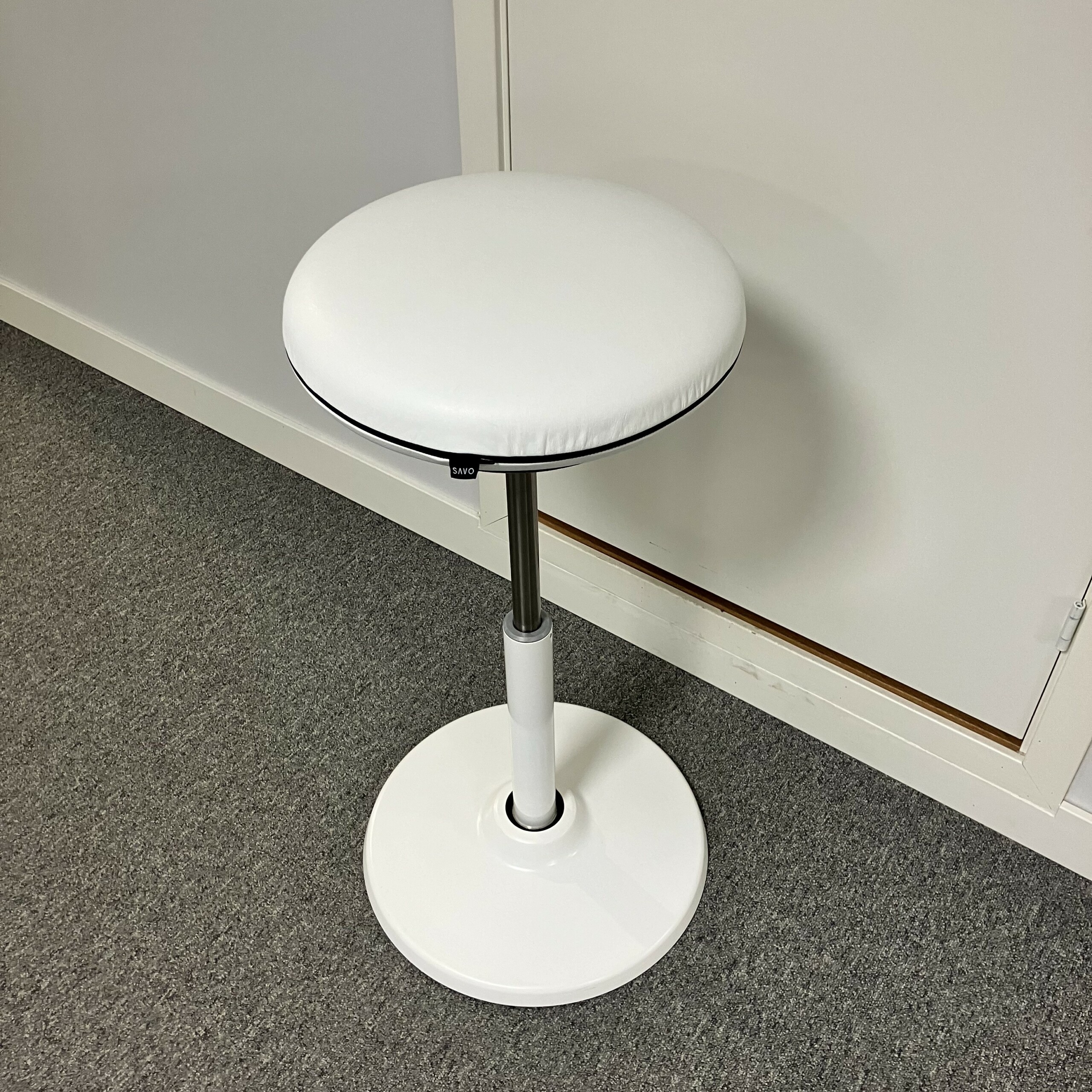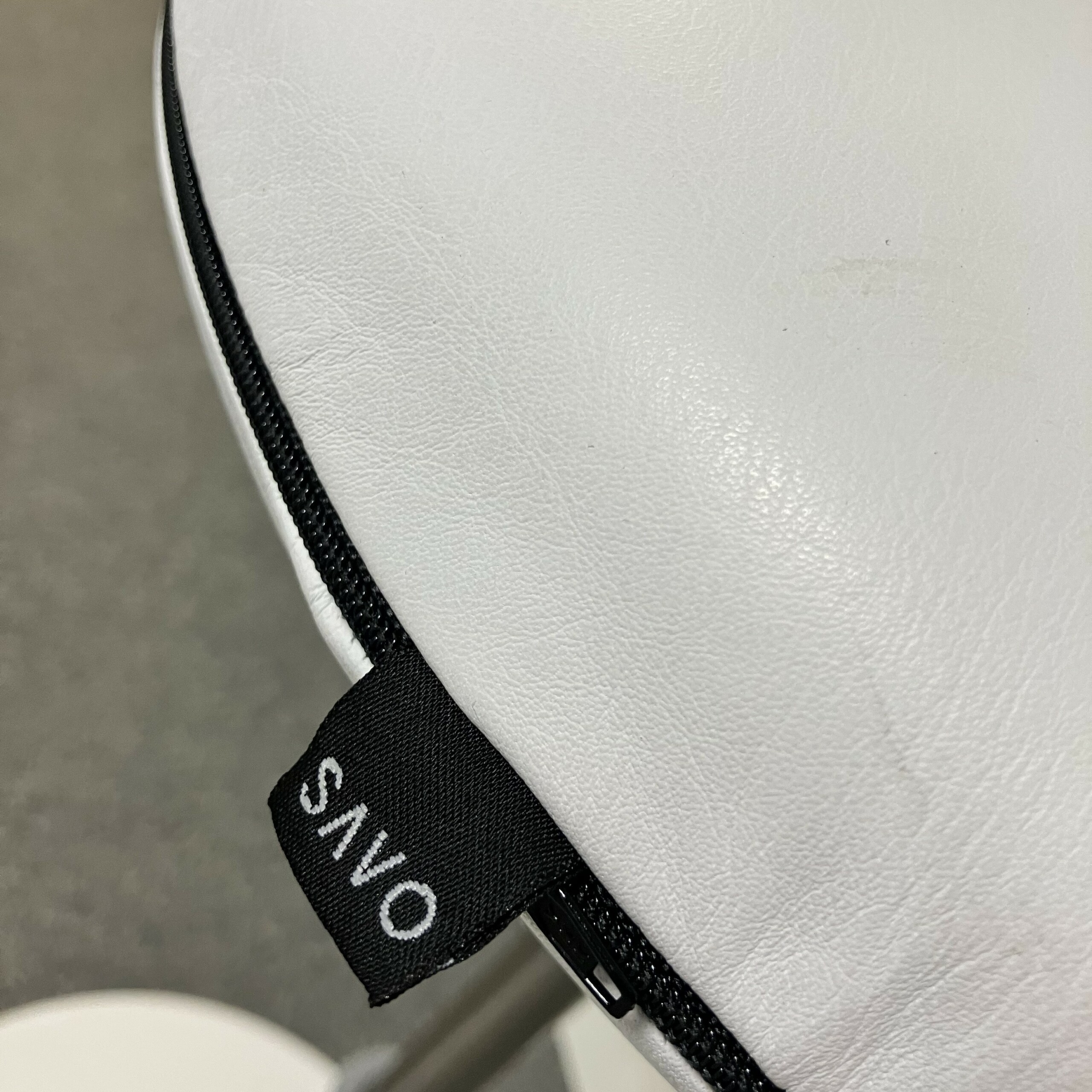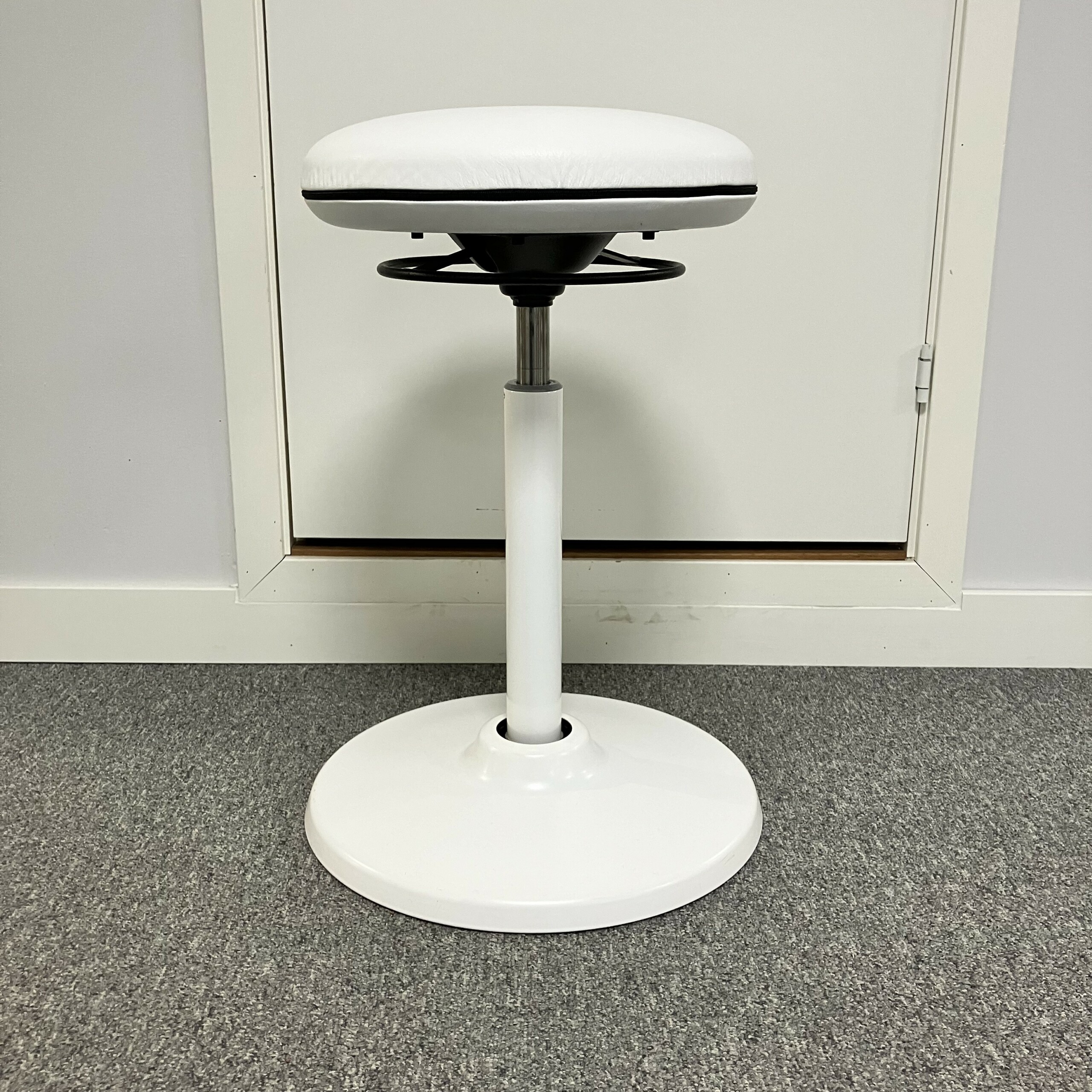 Sæde i læder (hvid). Søjlefod i metal (hvid).