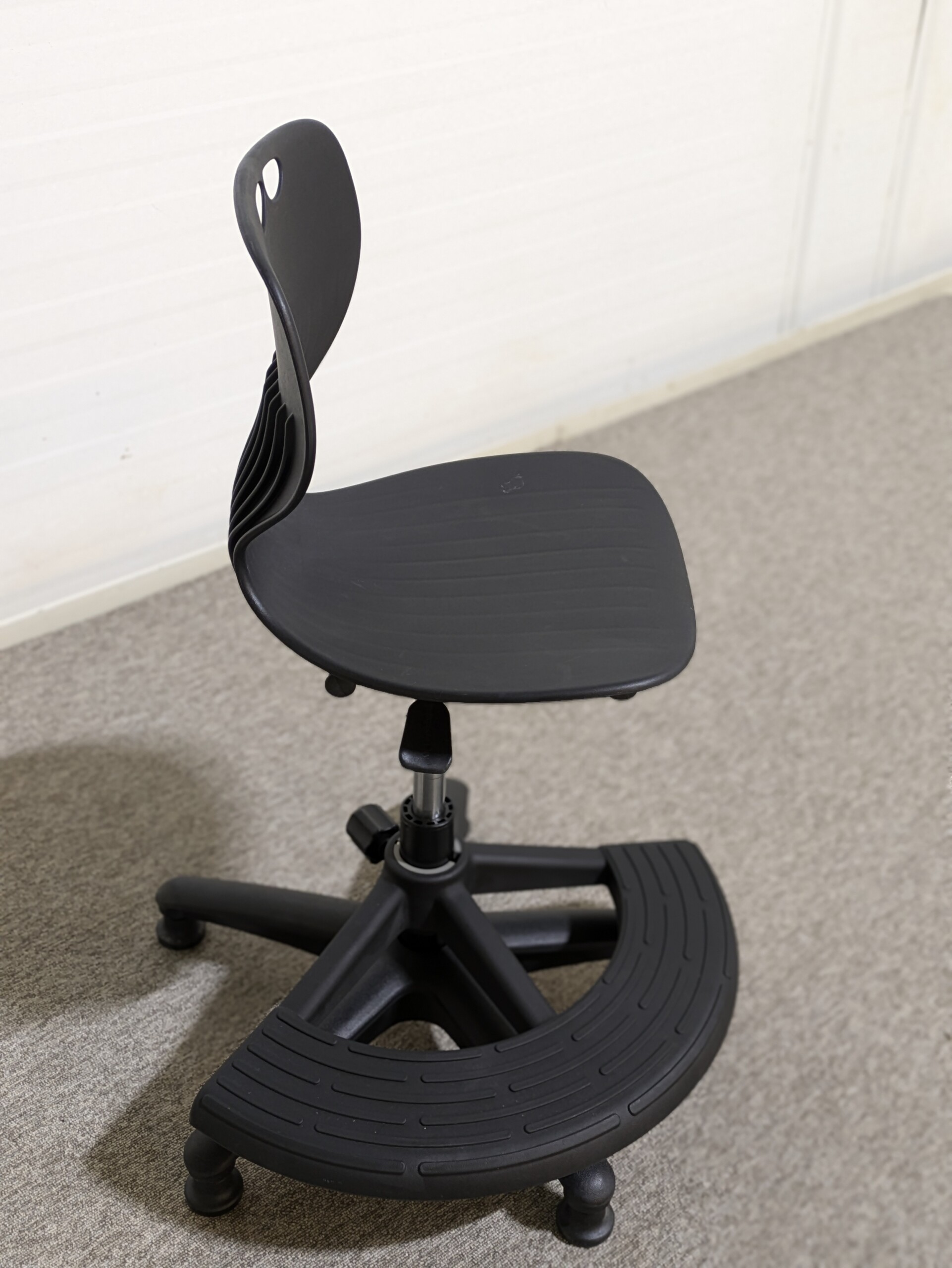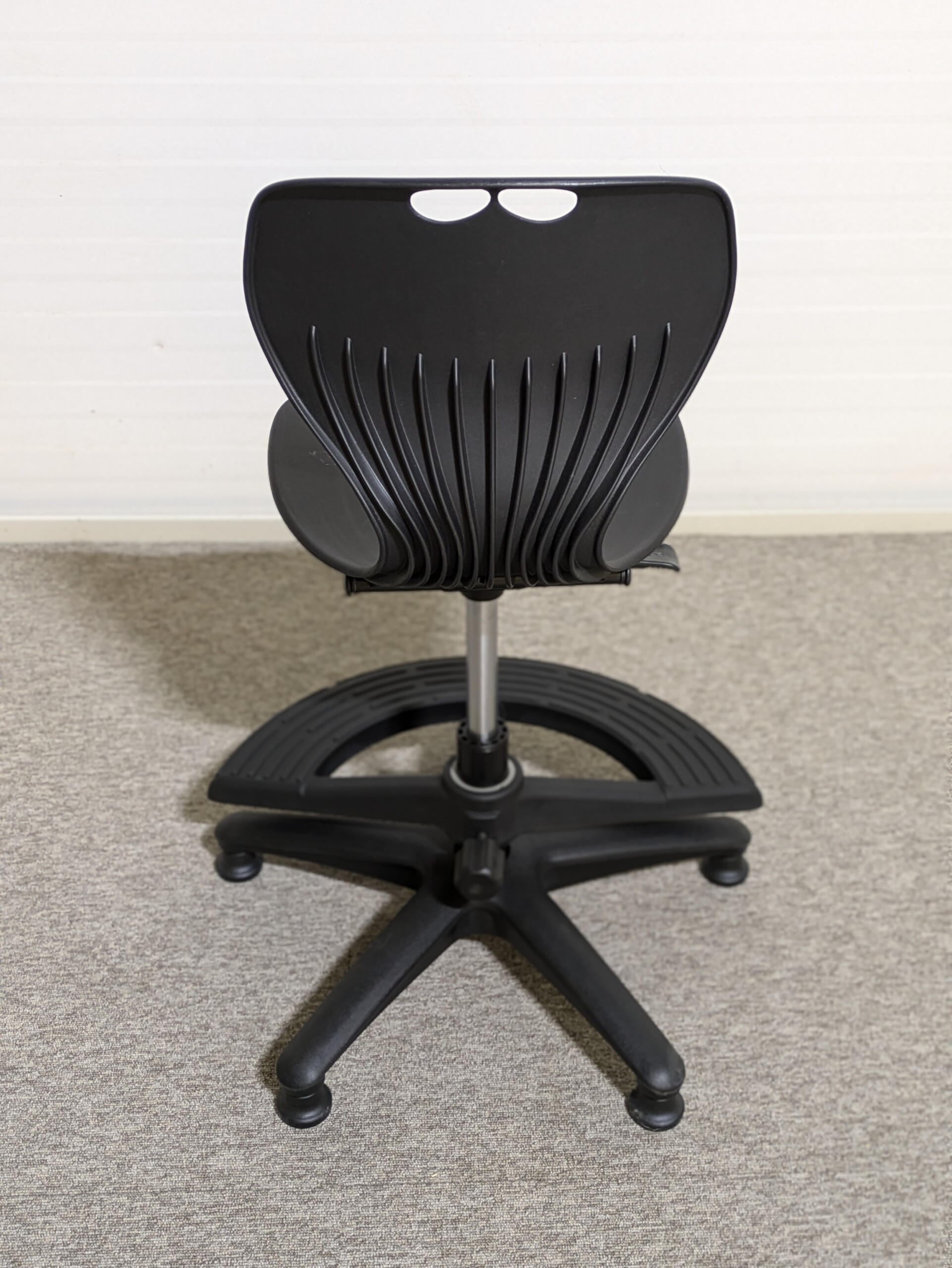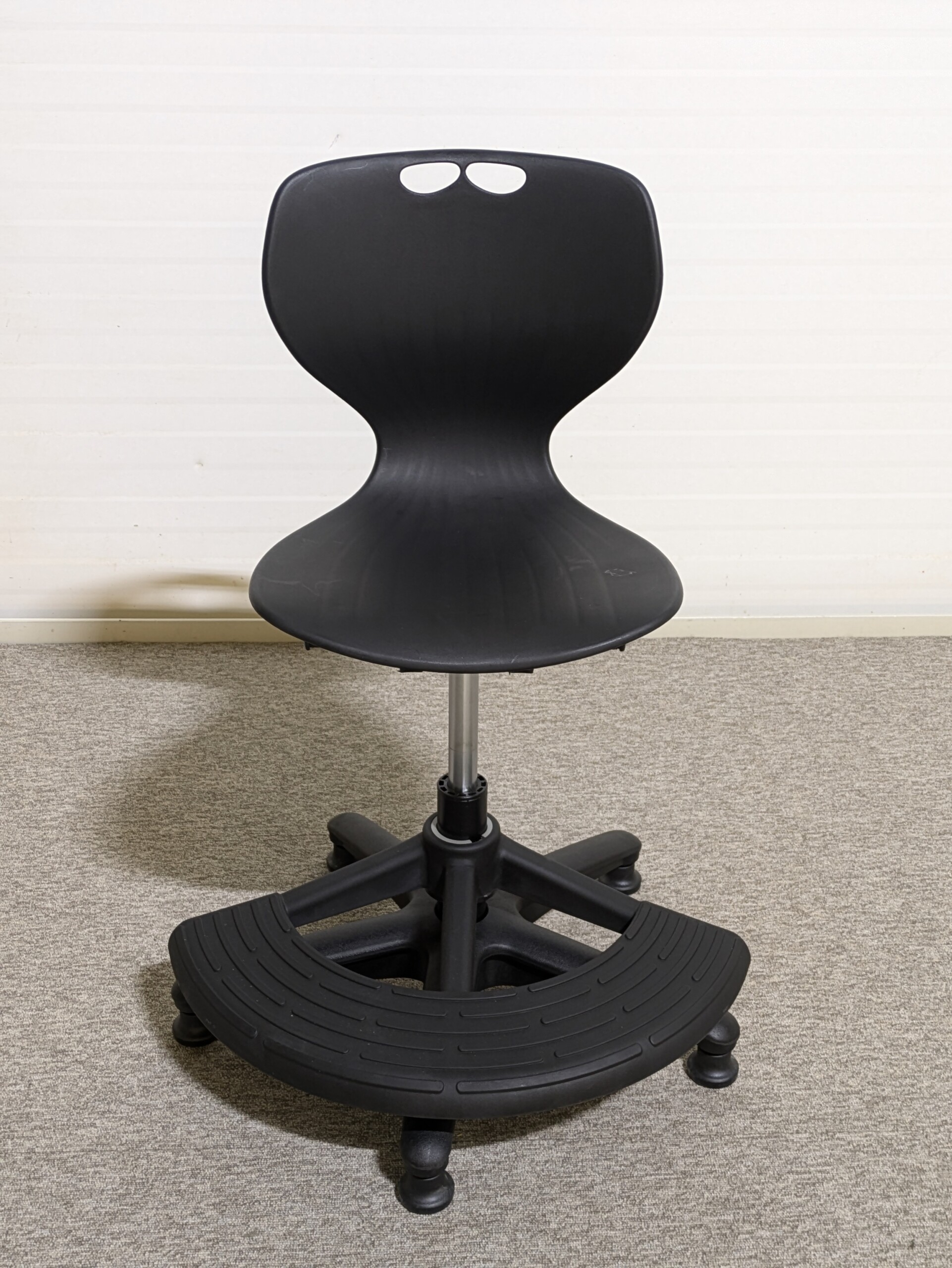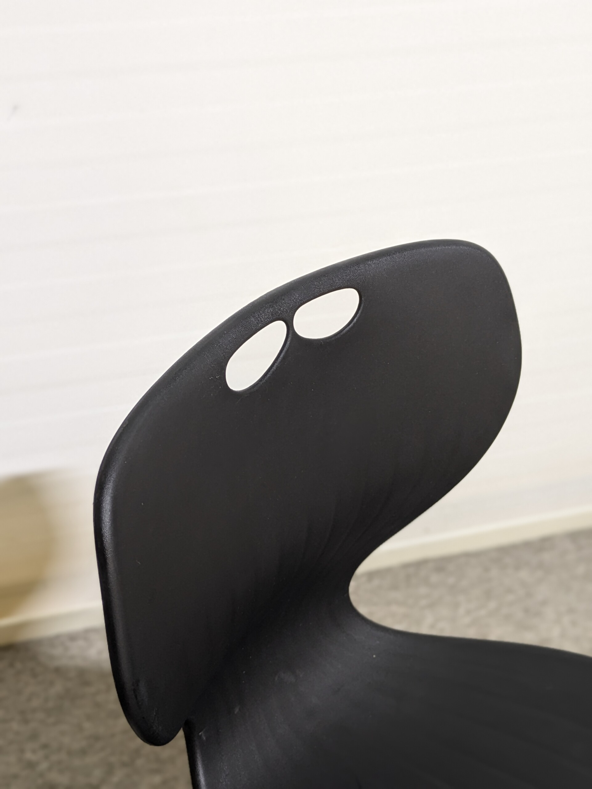 Sæde, ryg og fodkryds i plast (sort).