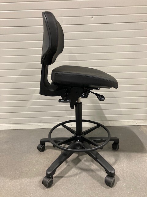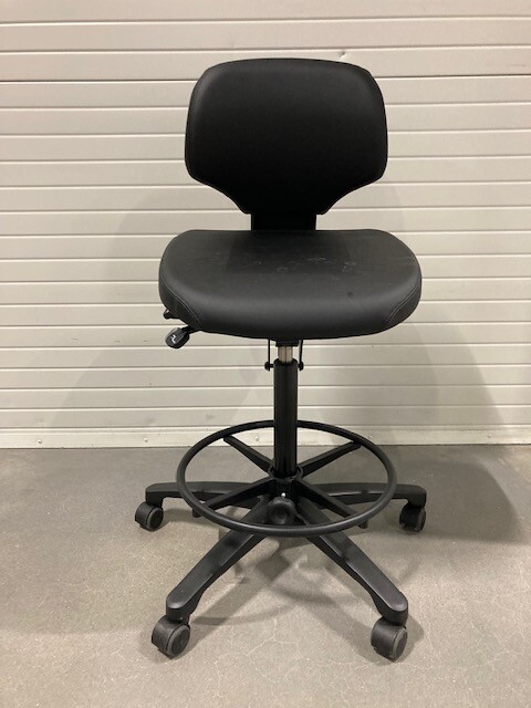 Sæde og ryg i kunstlæder (sort). Fodkryds i metal (sort). Højdejusterbar.