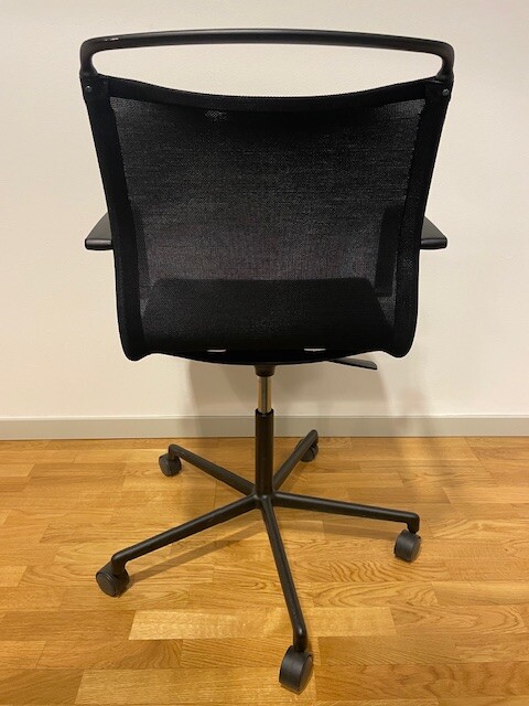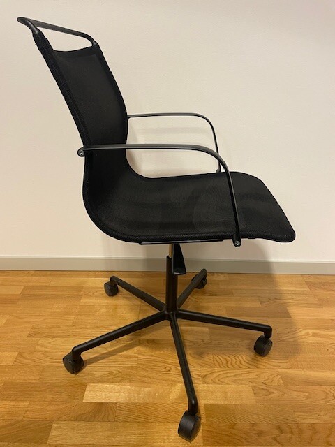 Sæde og ryg i mesh (sort). Fodkryds i metal (sort). Højdejusterbar.