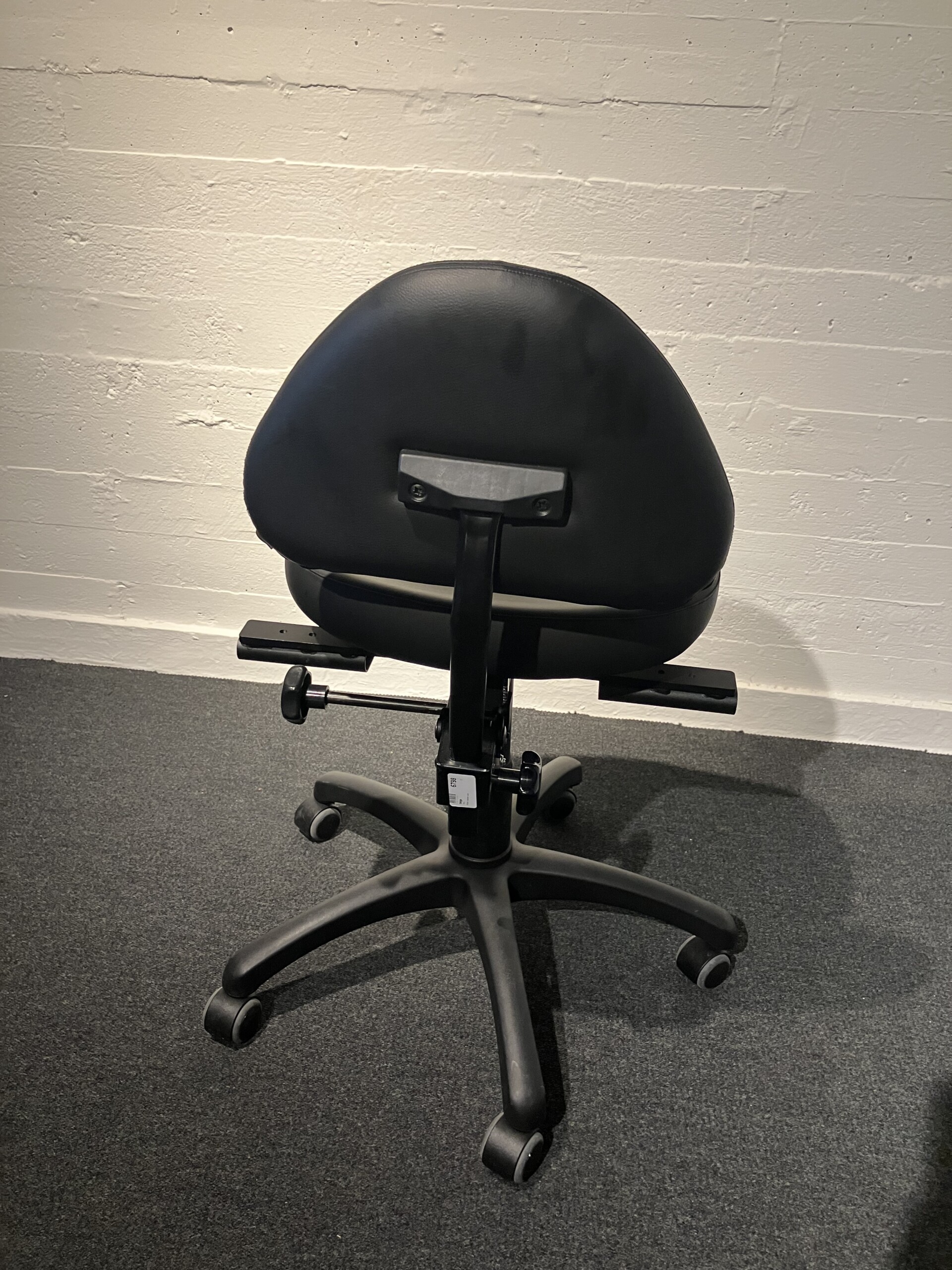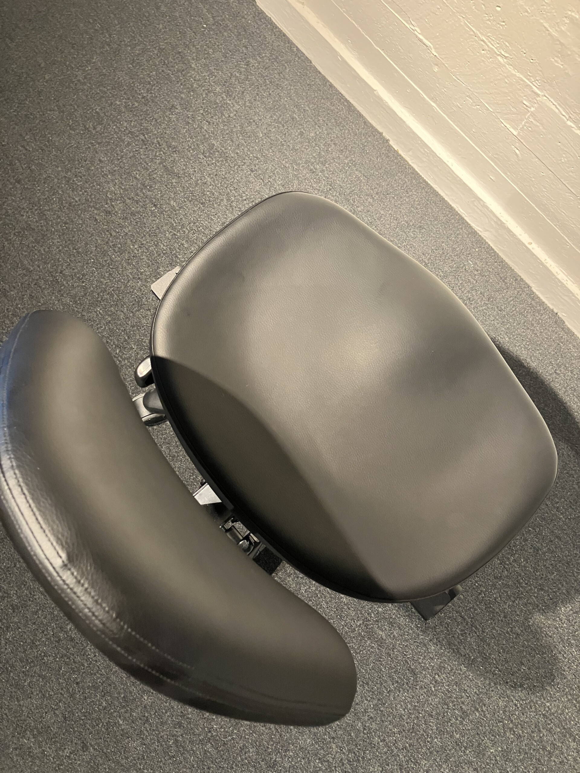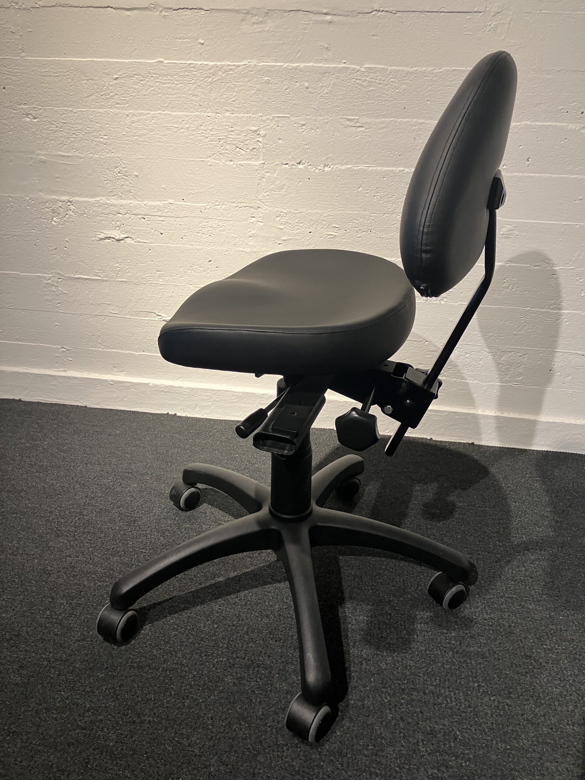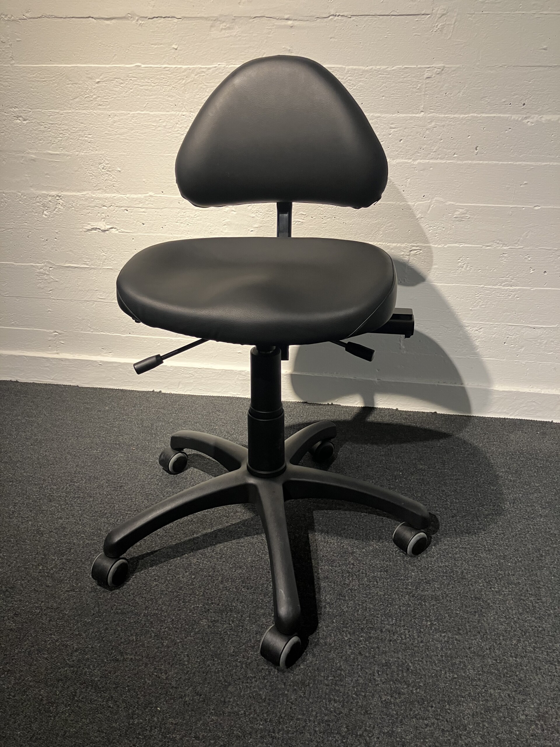 Sæde og ryg i kunstlæder (sort). Fodkryds i metal (sort). Højdejusterbar.