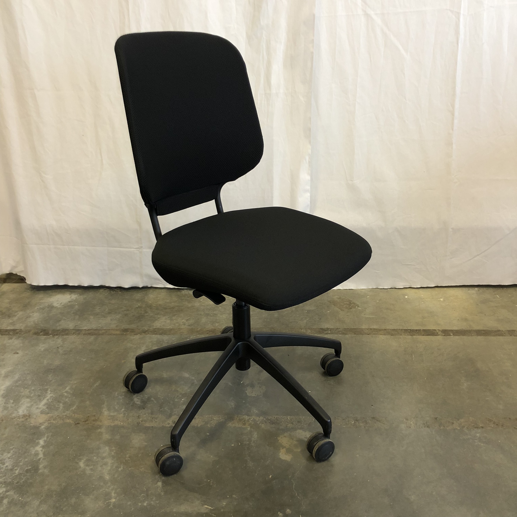 Sæde og ryg i stof (sort). Fodkryds i metal (sort). Højdejusterbar.